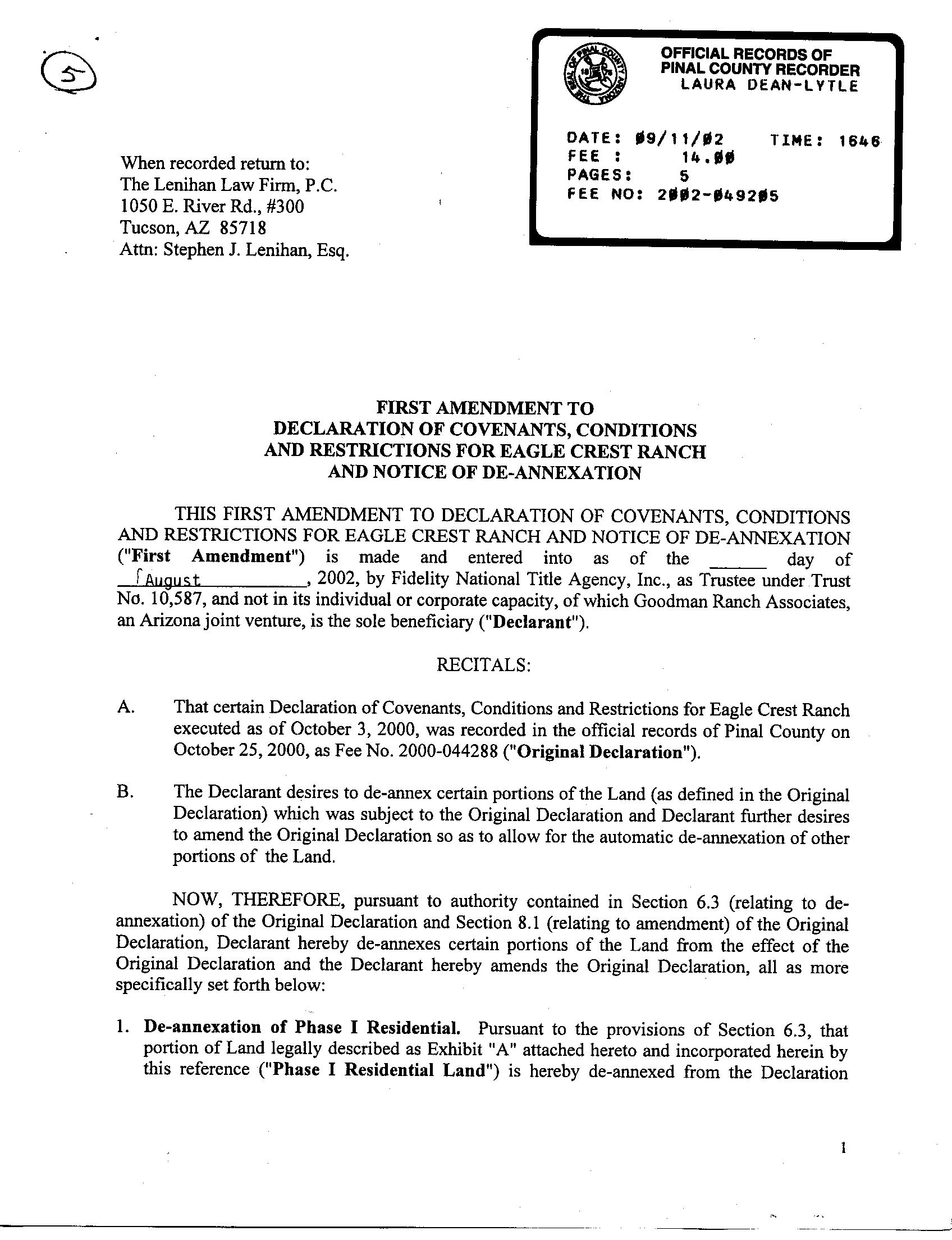 PINAL (PL), AZ Document:RES AMD 2002.49205 Page:1 of 5 Printed on:4/11/2023 11:53 AM Branch :FC0 User :JSTI