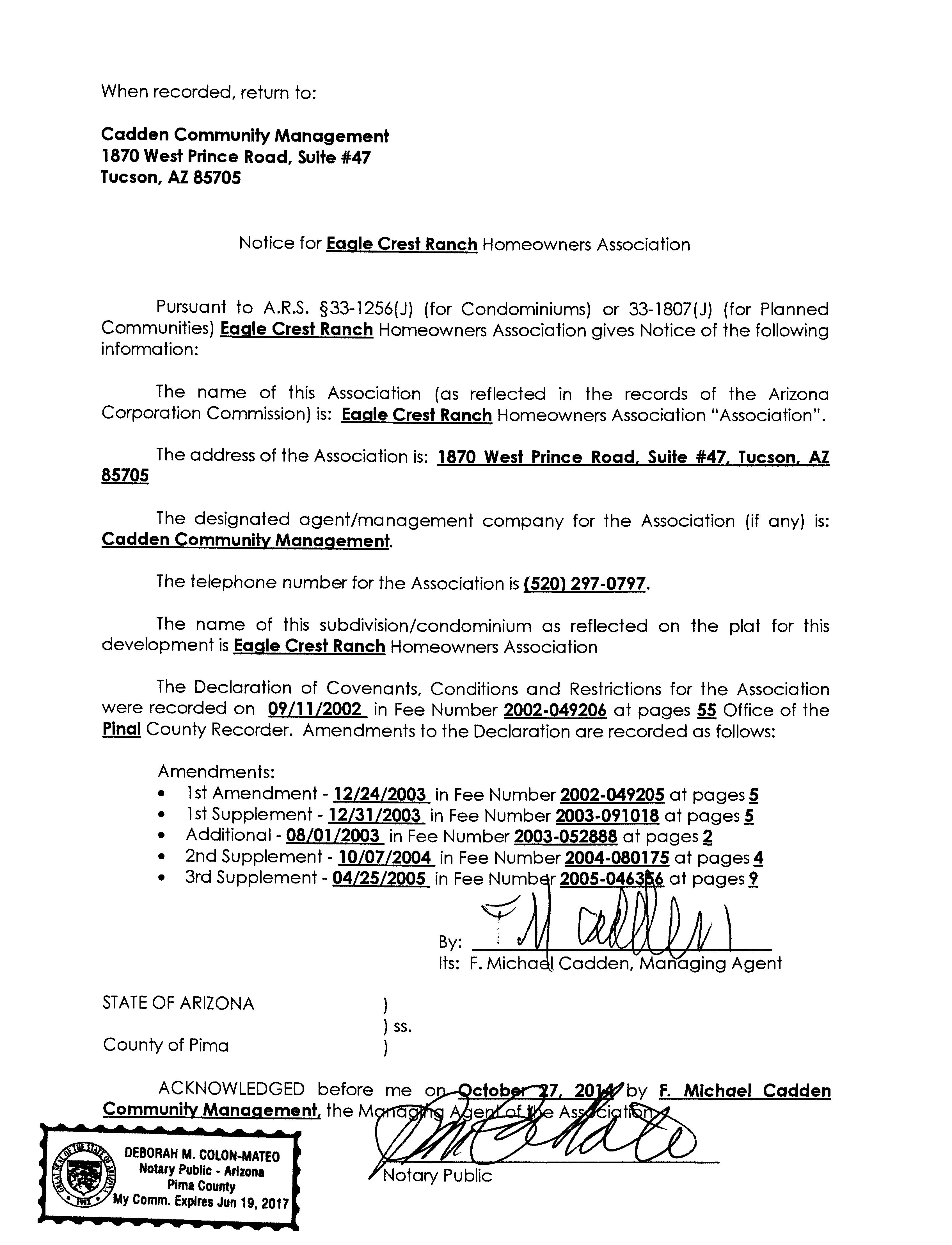 PINAL (PL), AZ Document:NOT HOA 2014.62829 Page:2 of 2 Printed on:4/11/2023 11:53 AM Branch :FC0 User :JSTI