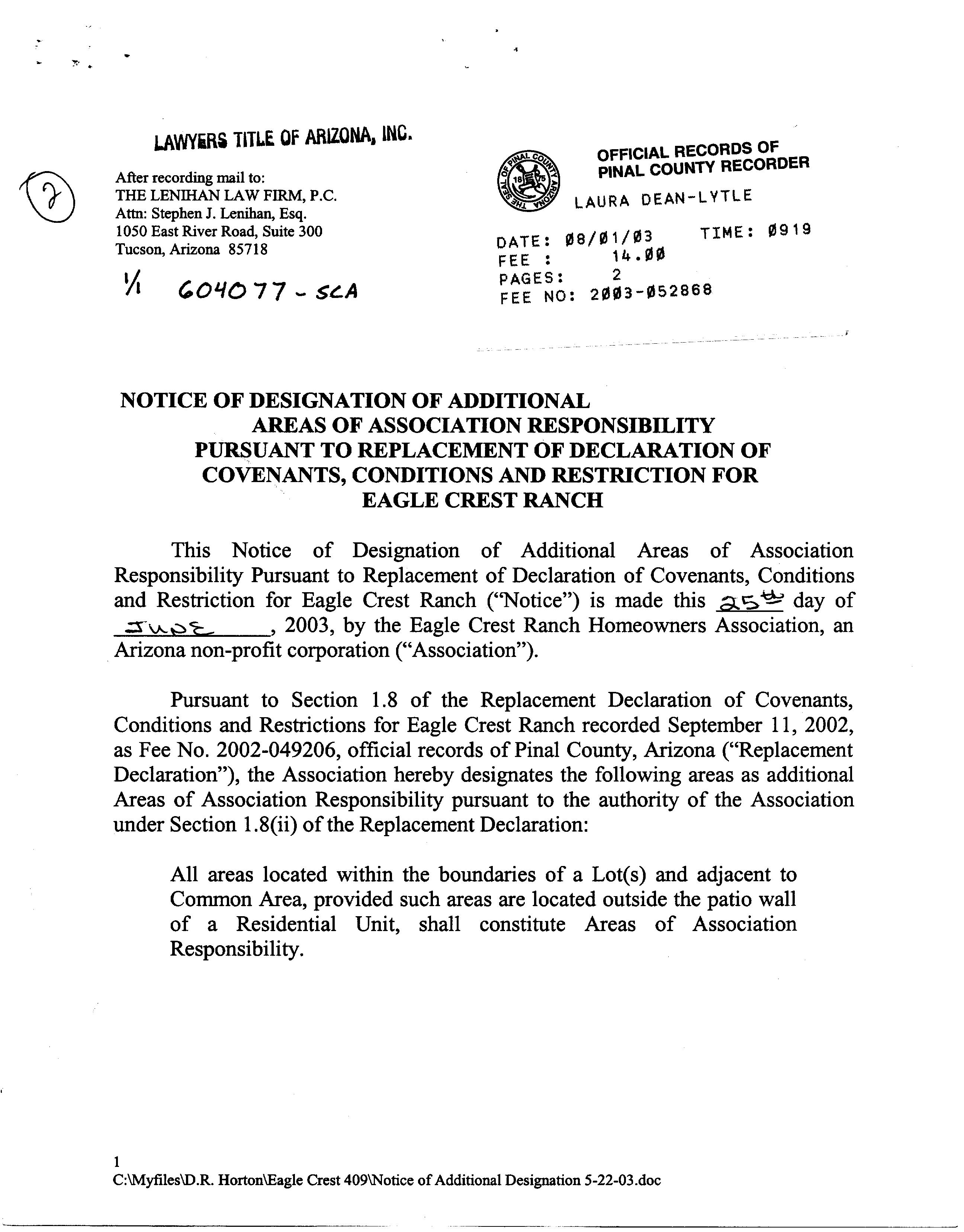 PINAL (PL), AZ Document:RES 2003.52868 Page:2 of 2 Printed on:4/11/2023 11:53 AM Branch :FC0 User :JSTI