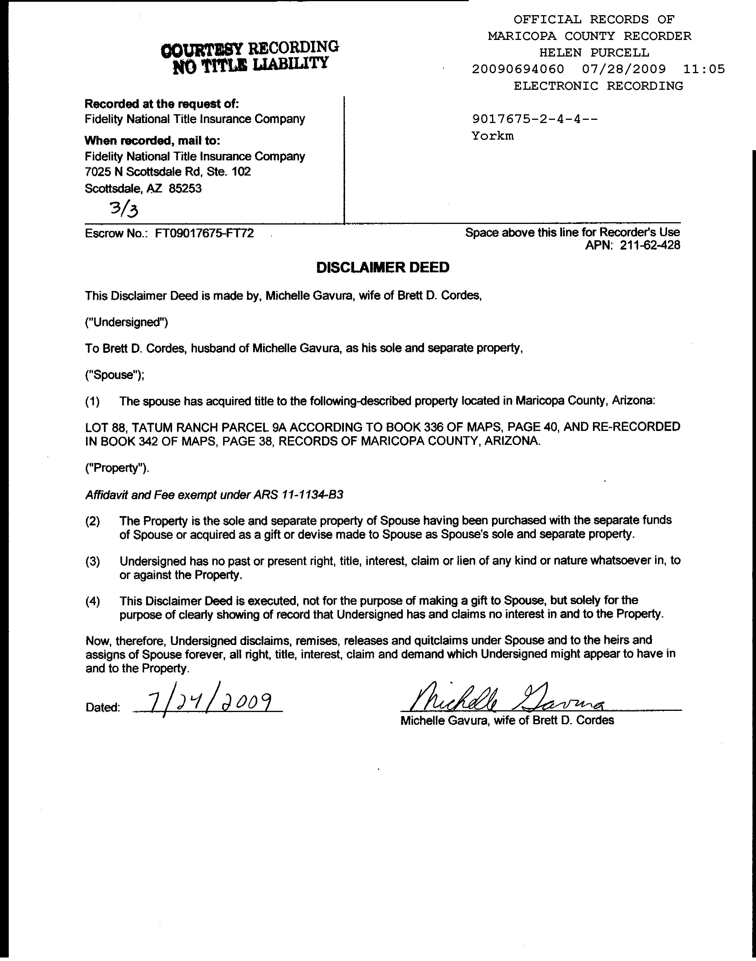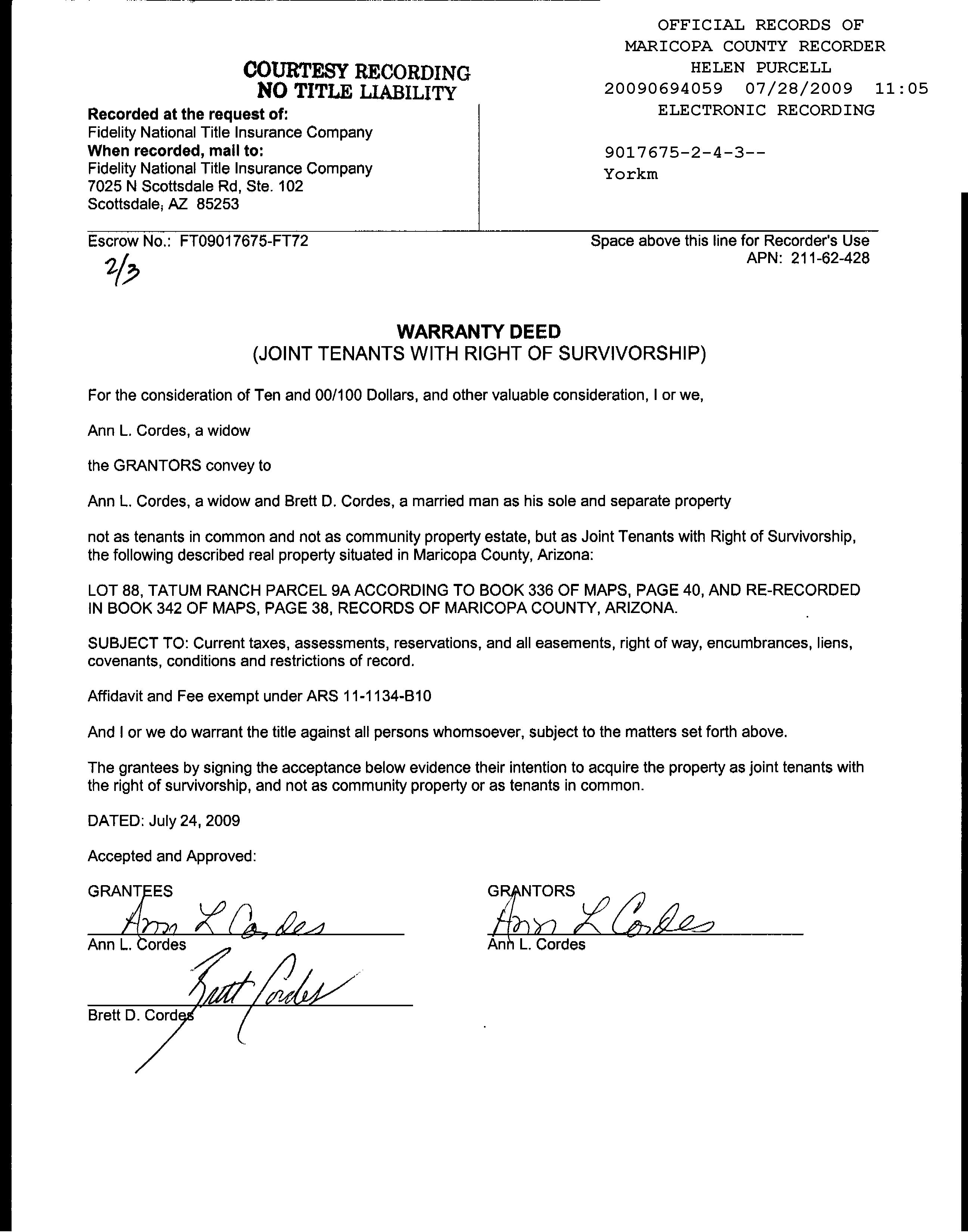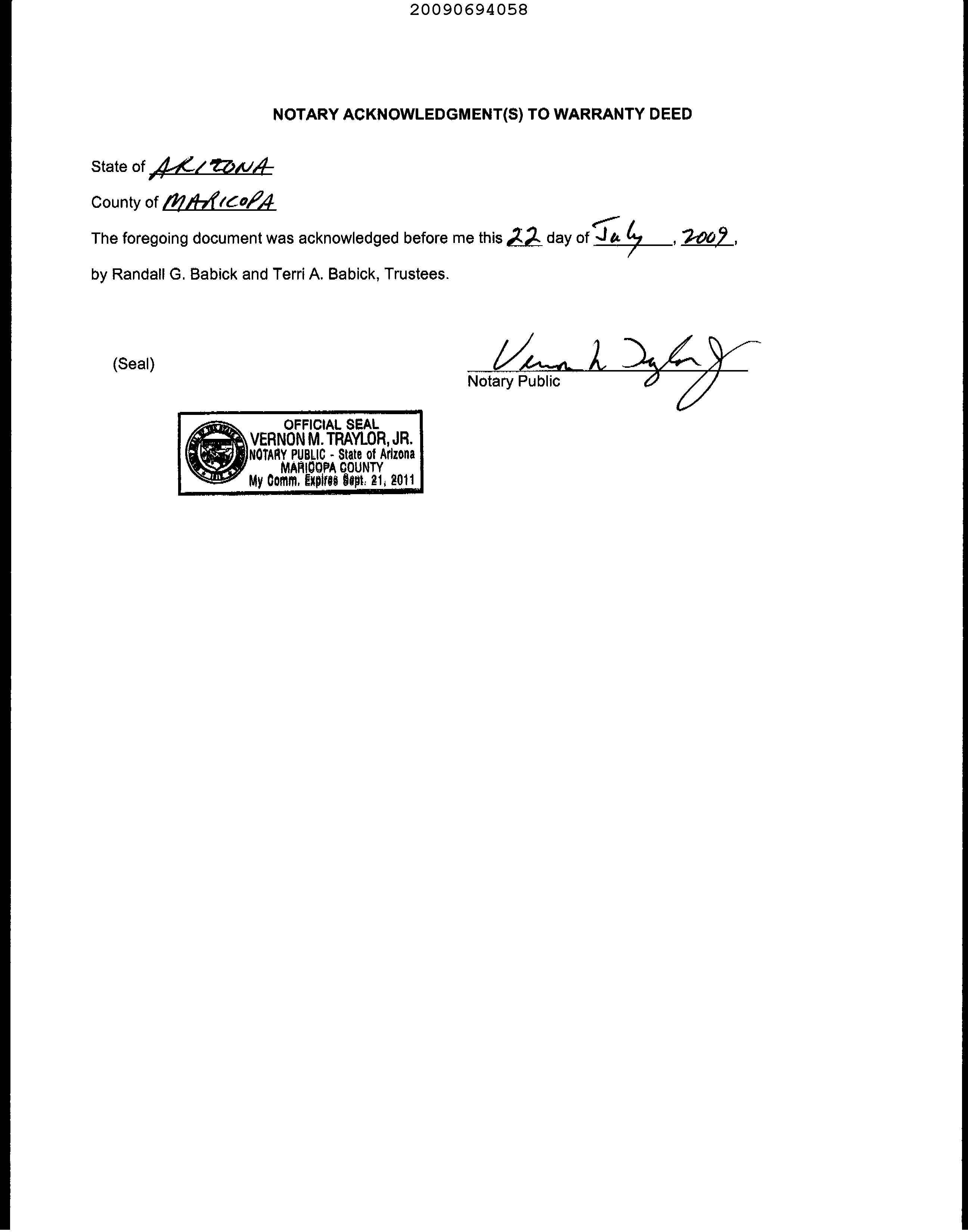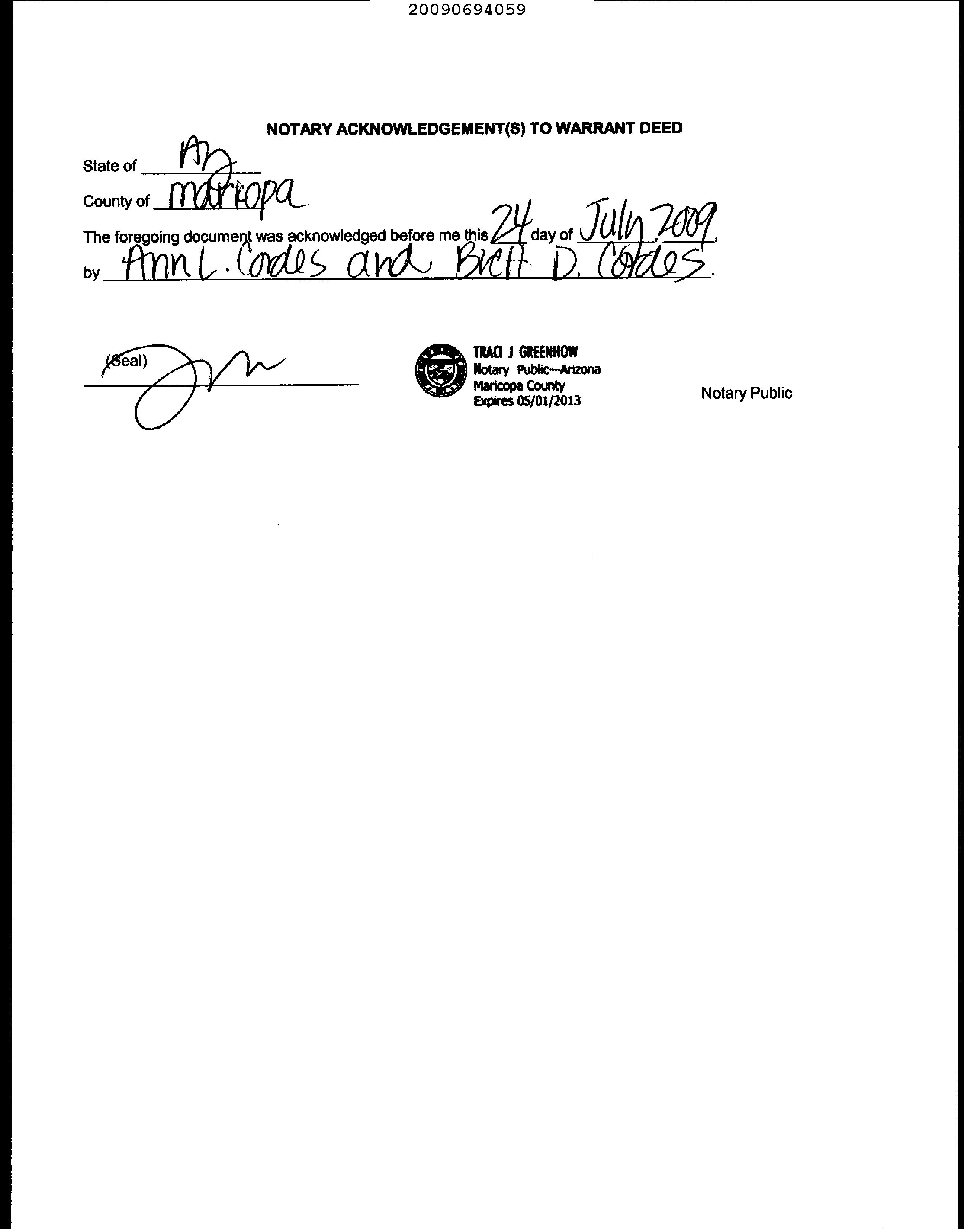 MARICOPA, AZ Document:DED WAR 2009.694058 Page:3 of 3 Printed on:5/19/2023 9:44 AM Branch :FC0 User :JSTI