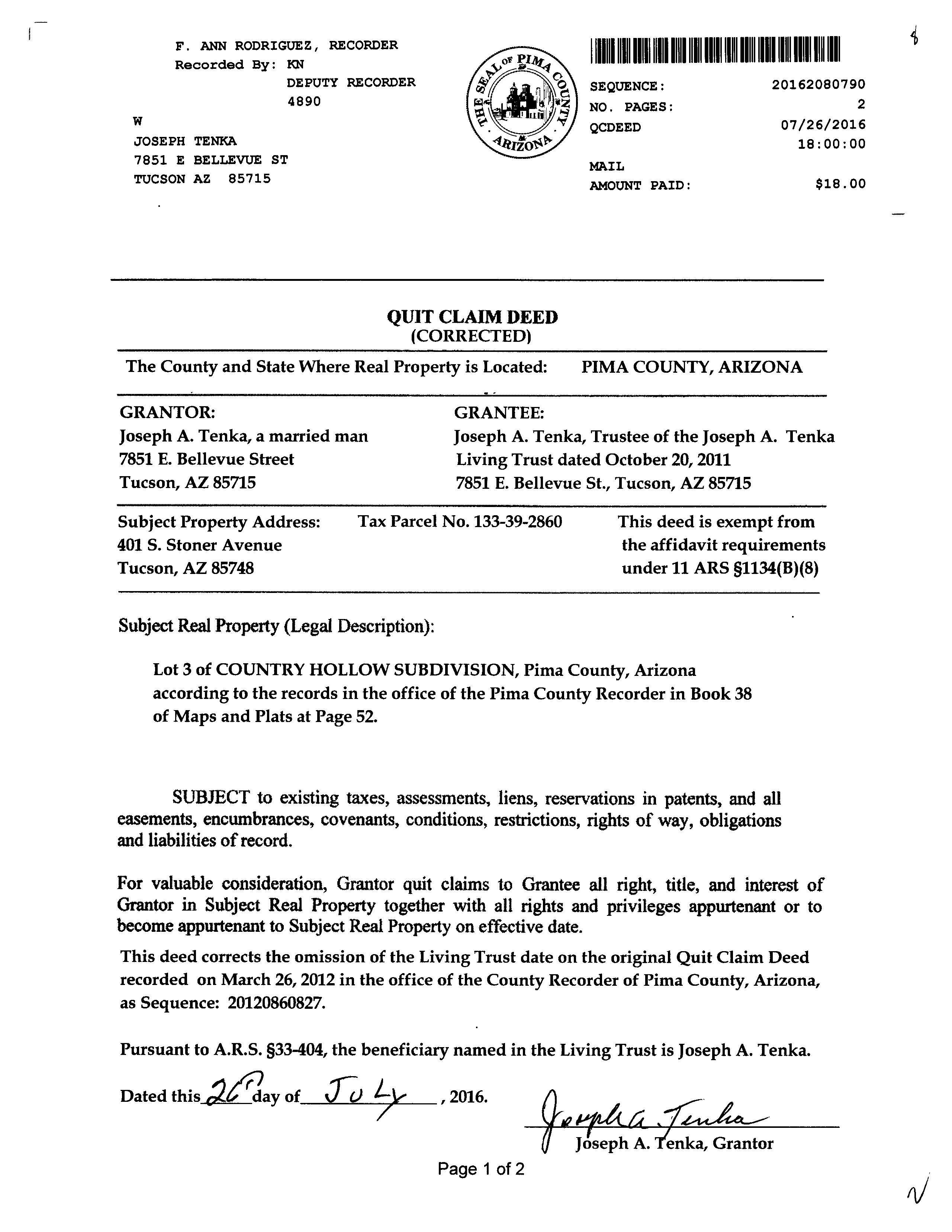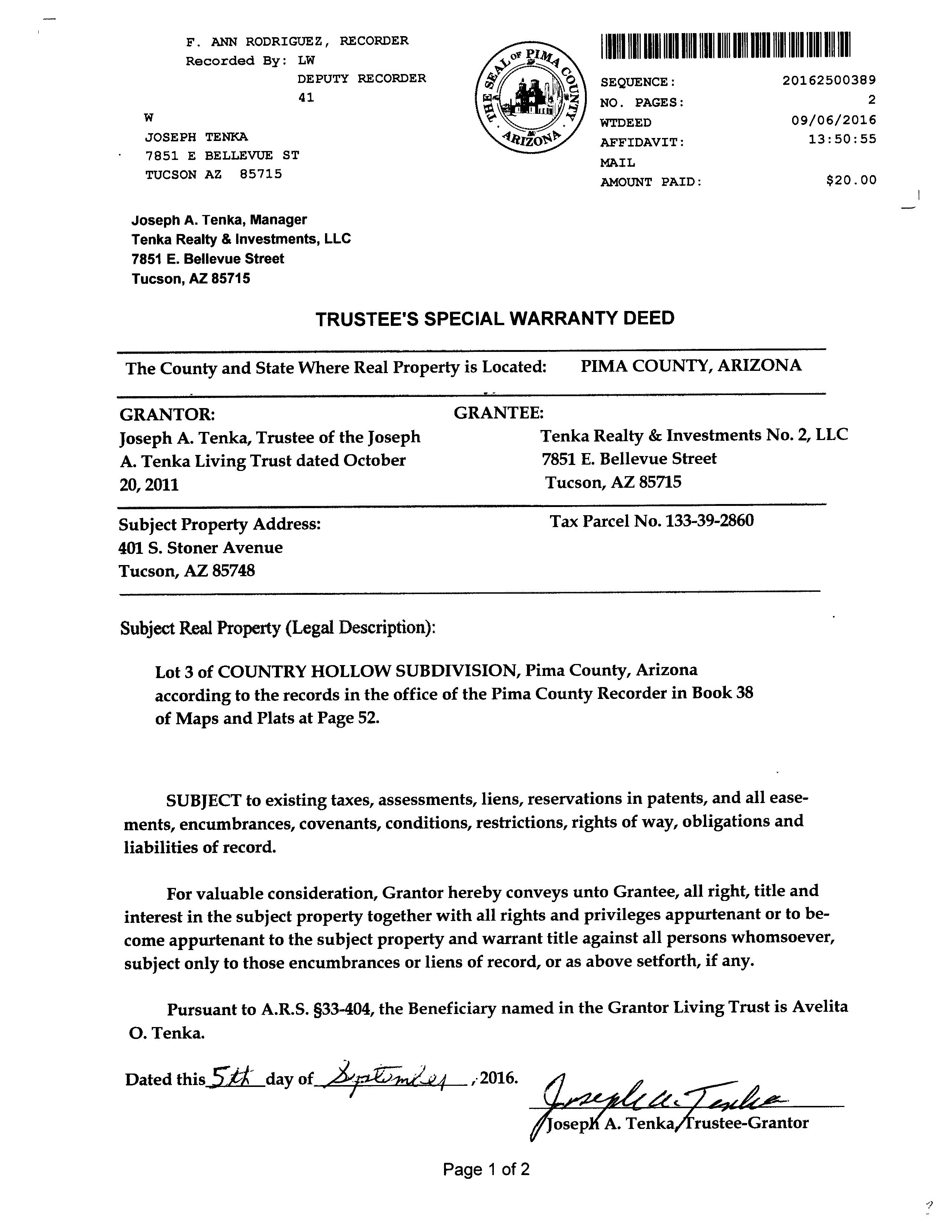 Prior Rec/Sale Date : 09/06/2016 / 09/05/2016