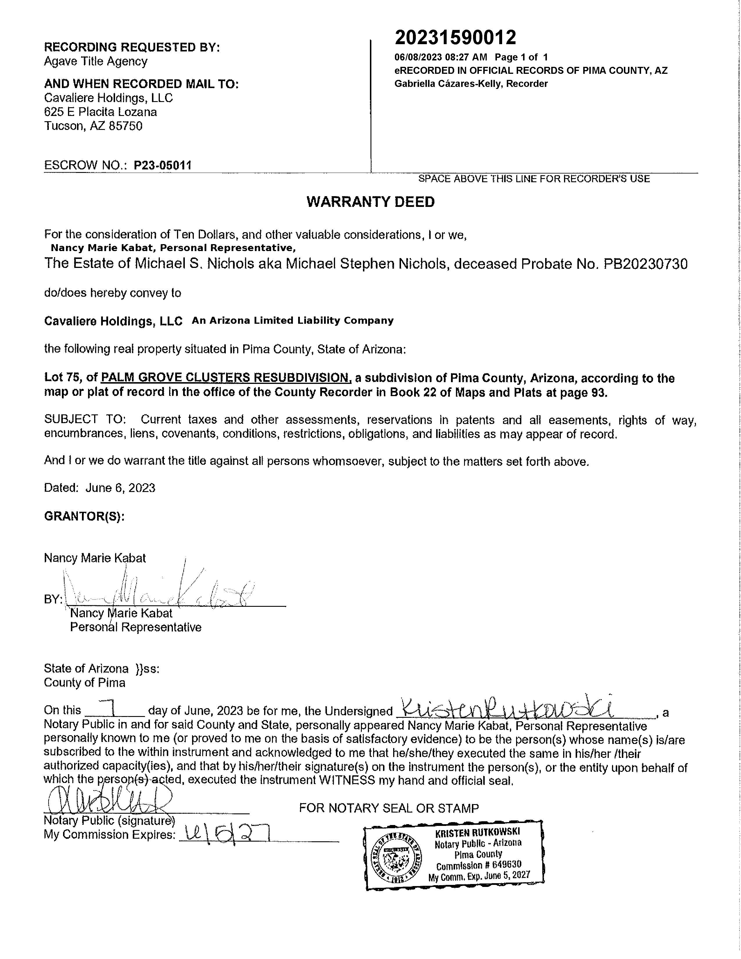 #20 3649 S Marvin Pl Tucson Az 85730 Owner Name: Ryberq Nathan / APN / Alternate APN: 136-34-7550 / Deed Type: Warranty Deed Land Use: Condominium Subdivision / Tract: Valley View East 07 / Lot Size: 5,583 Year Built / Eff: 1975 / Rec. Date / Price: 11/07/2022 / $210,000 Living Area: 959 # of units: Document #: 3110451 Bedrooms: Pool: Total Tax Value: $107,026 Bath(F/H): /