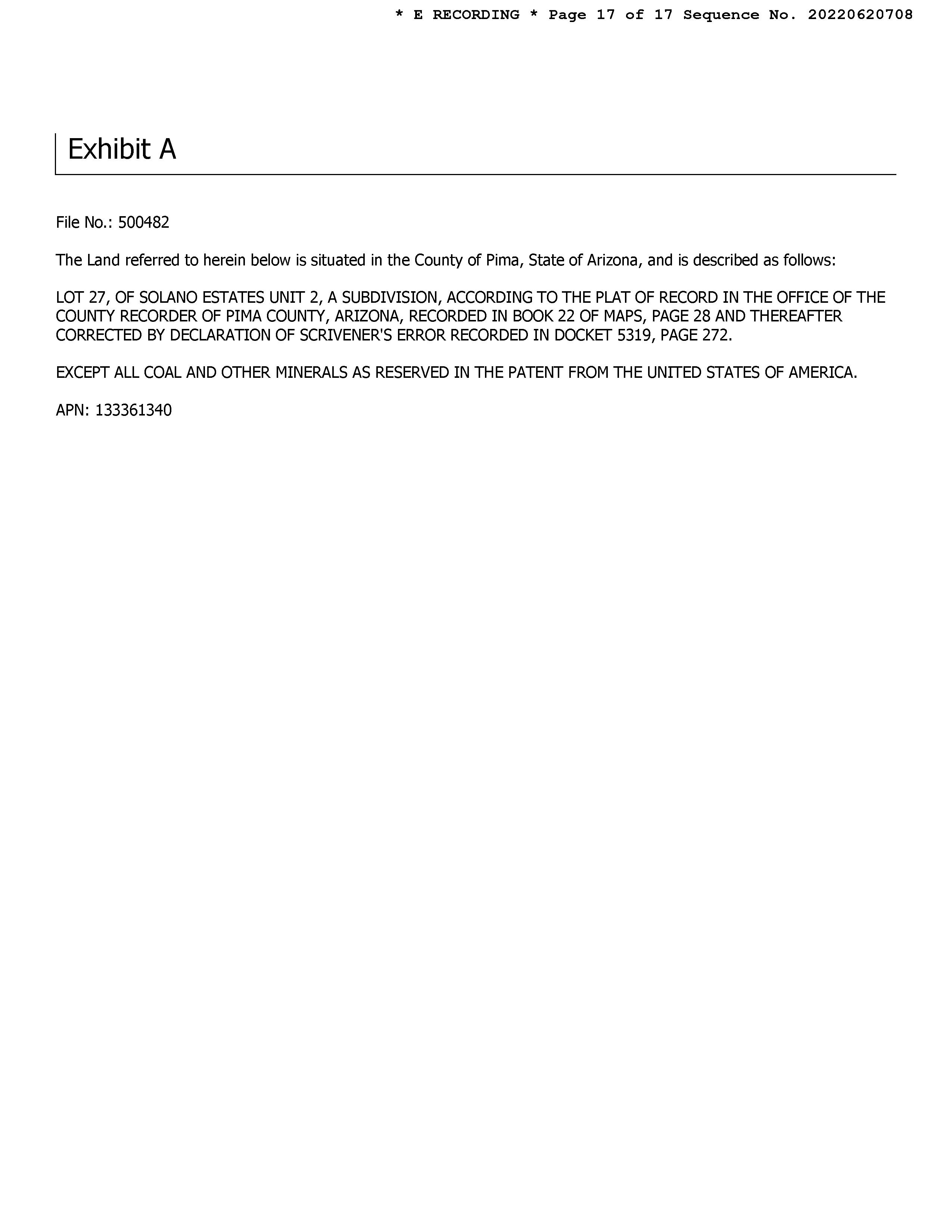 Subject Property: 409 N Bull Run Dr Tucson Az 85748
