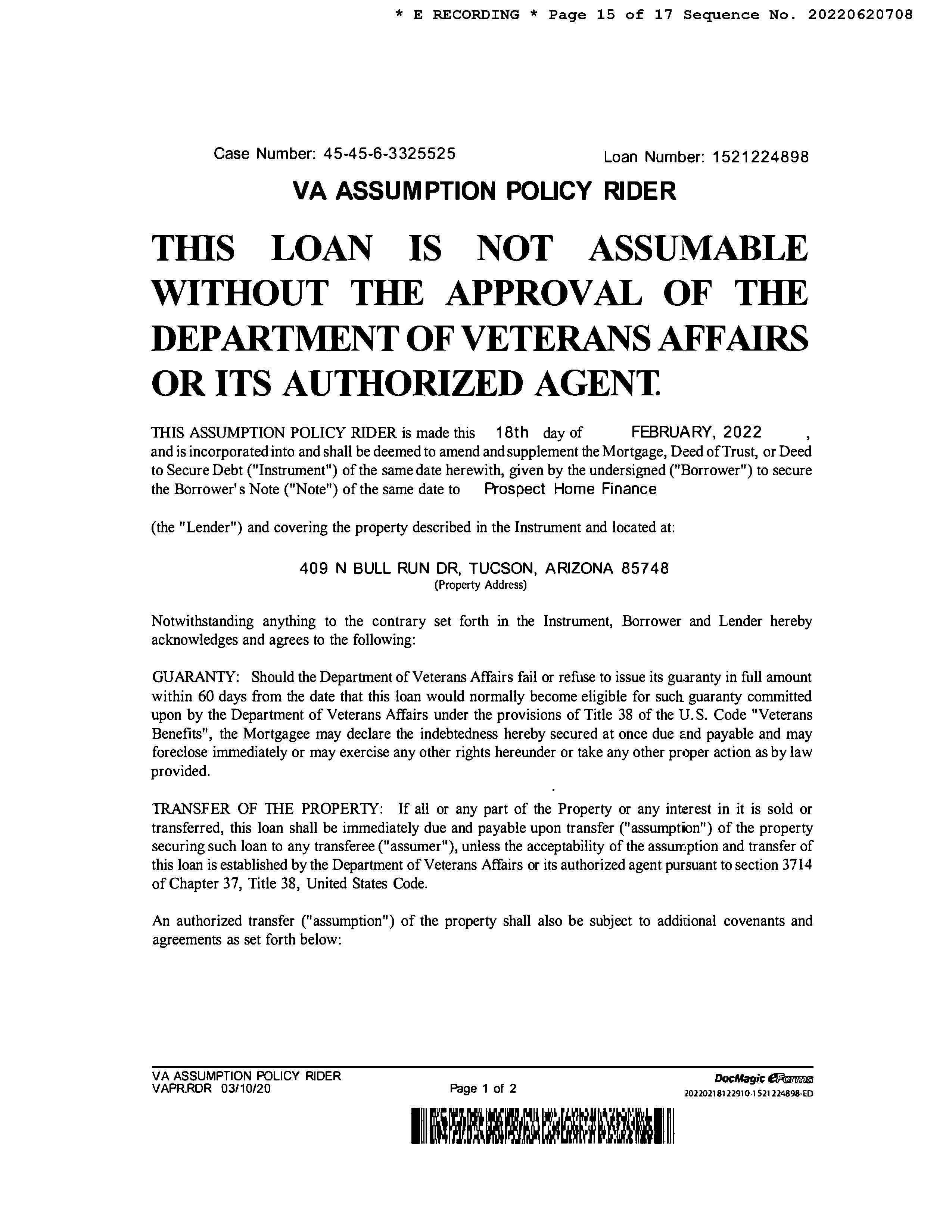 919 N Via Zahara Del Sol Tucson Az 85748 Owner Name: Hirschfield Ryan /Hirschfield Veronica B