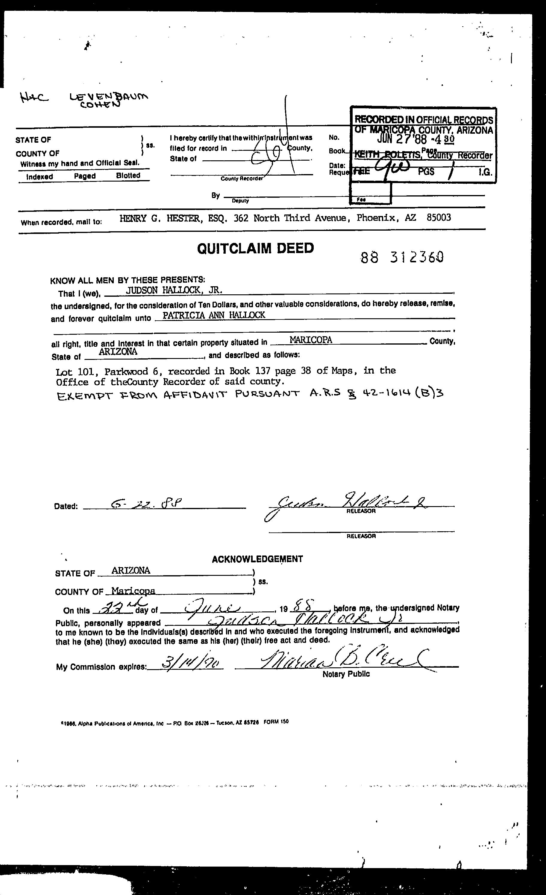 County : Maricopa, Az Subdivision : Parkwood Sub - Unit 6