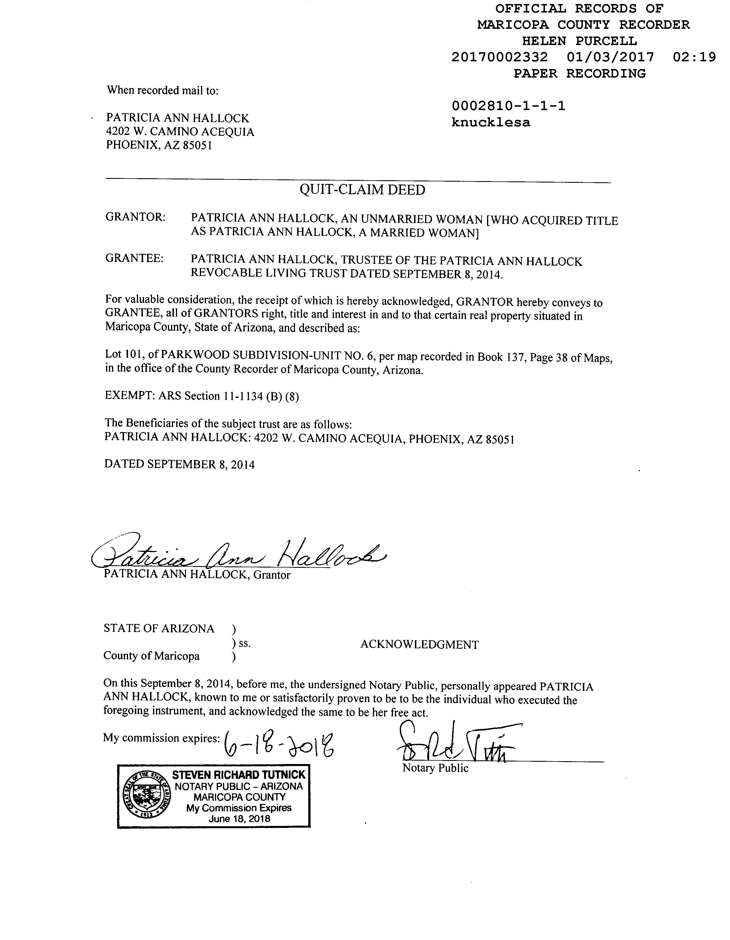 Mailing Address : 4202 W Camino Acequia, Phoenix AZ 85051-1042 C082