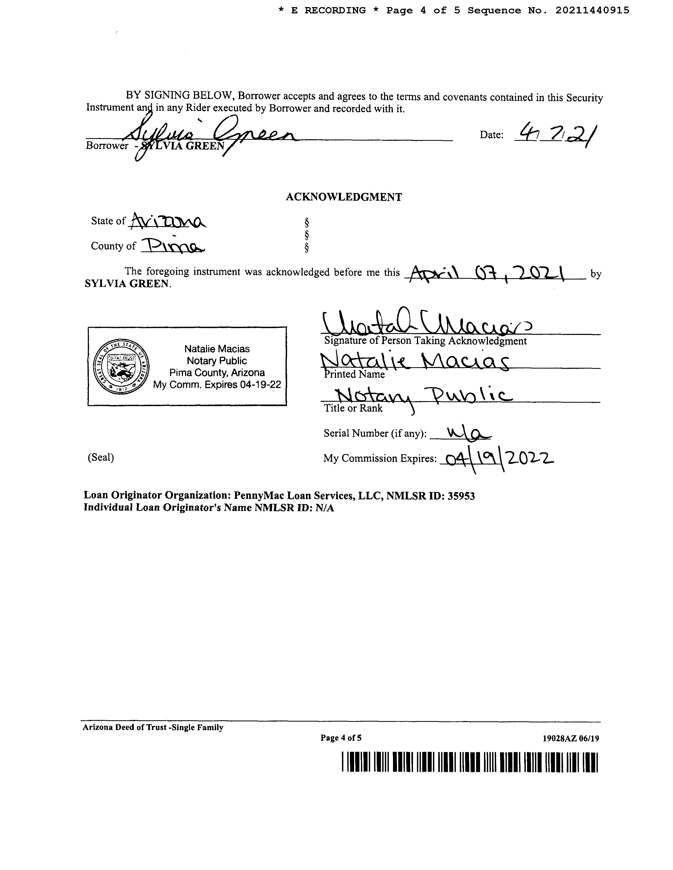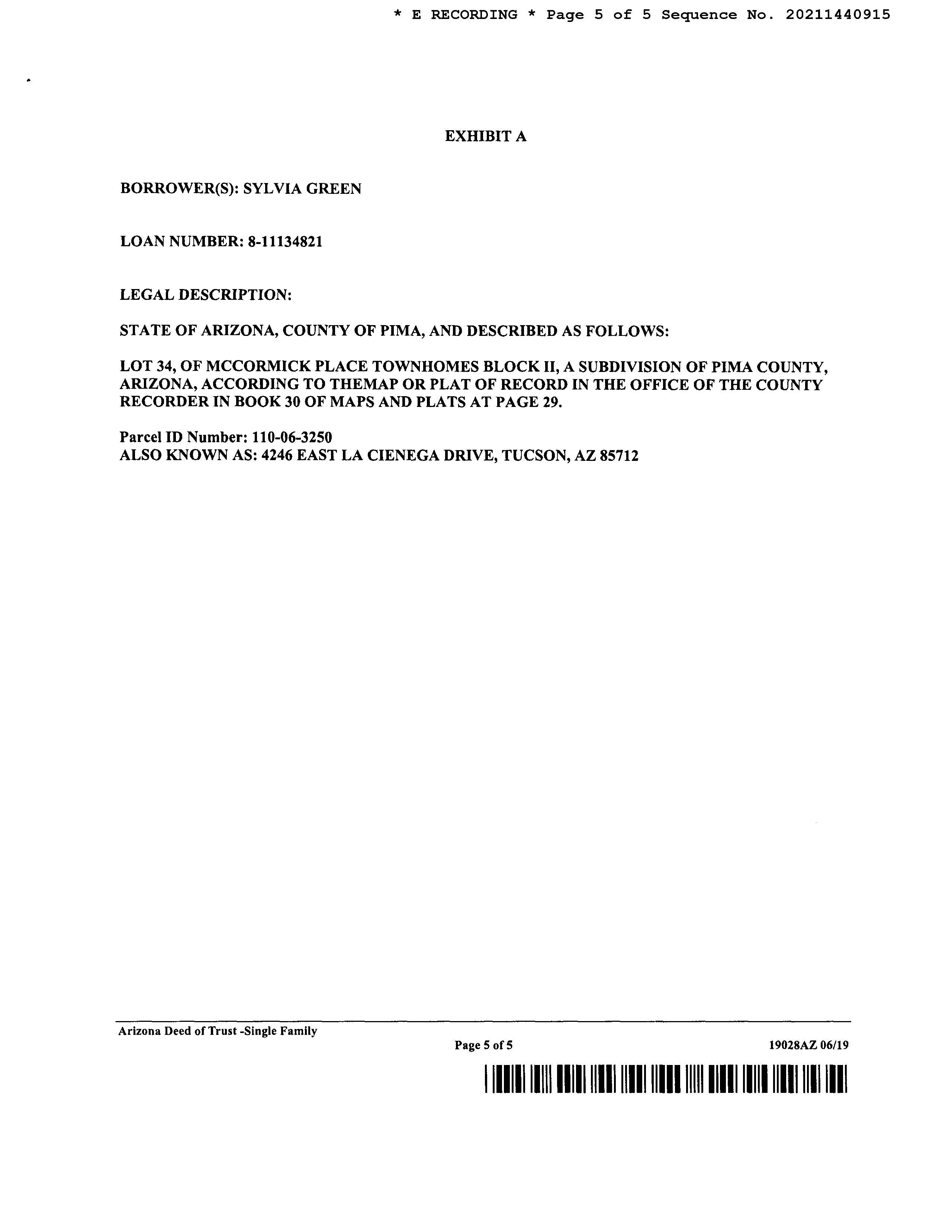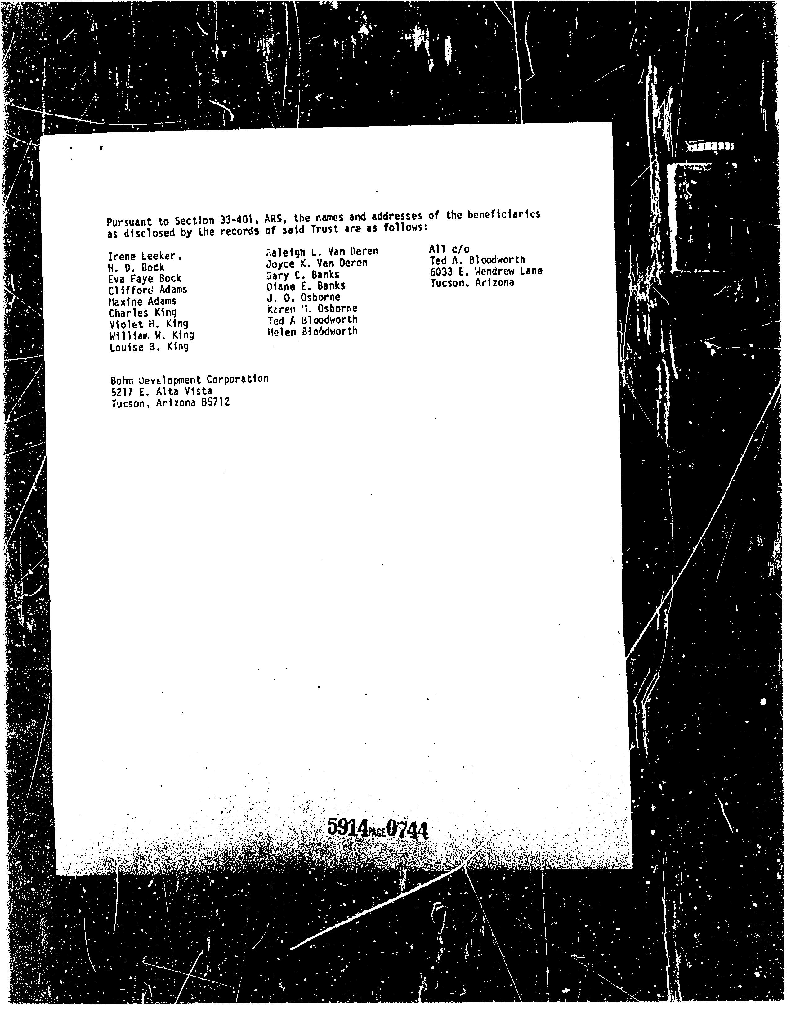 Mailing Address : 4246 E La Cienega Dr, Tucson AZ 85712-1462 C019