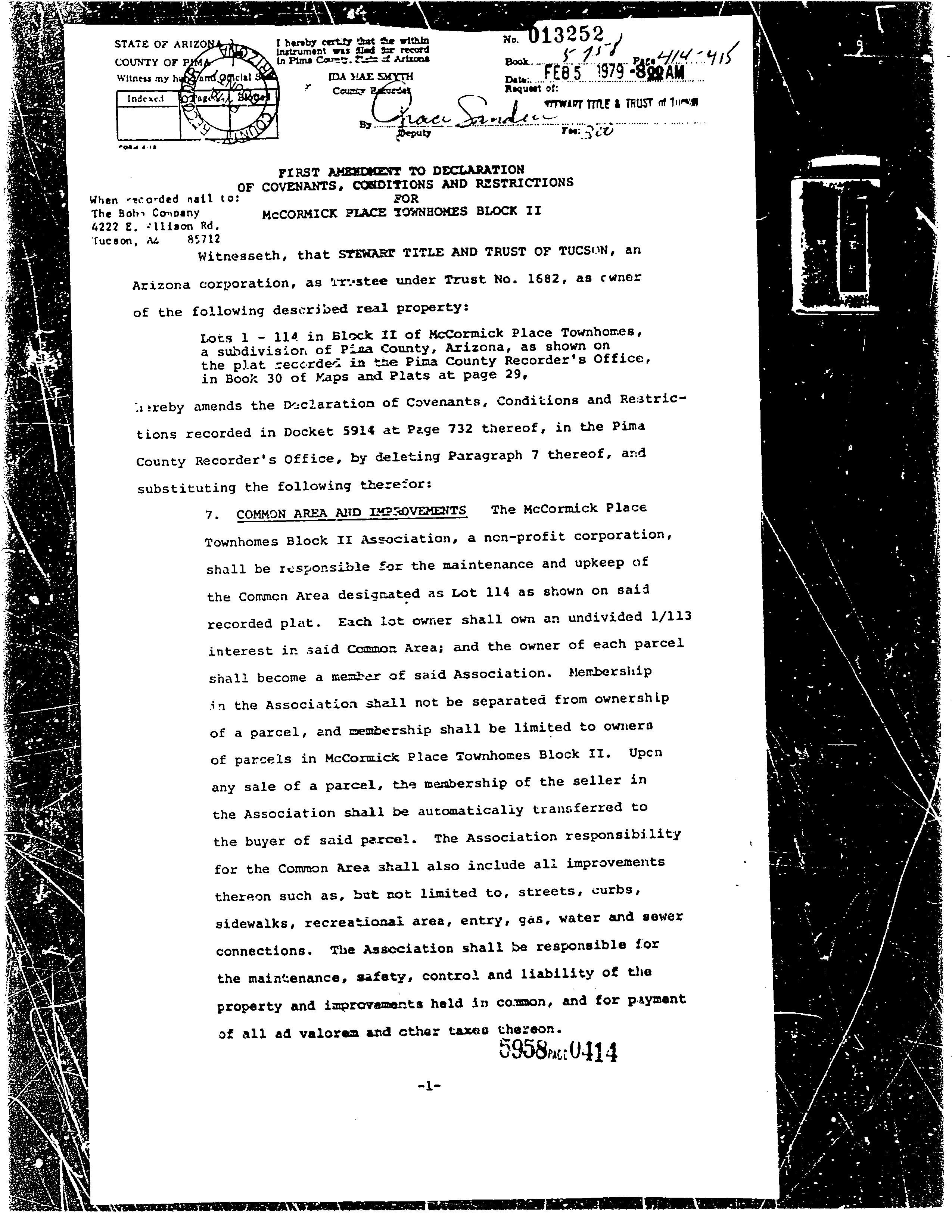Legal Description : Mc Cormick Place Townhomes Blk Ii Lot 34 & Und 1/113 Int In Common Areas