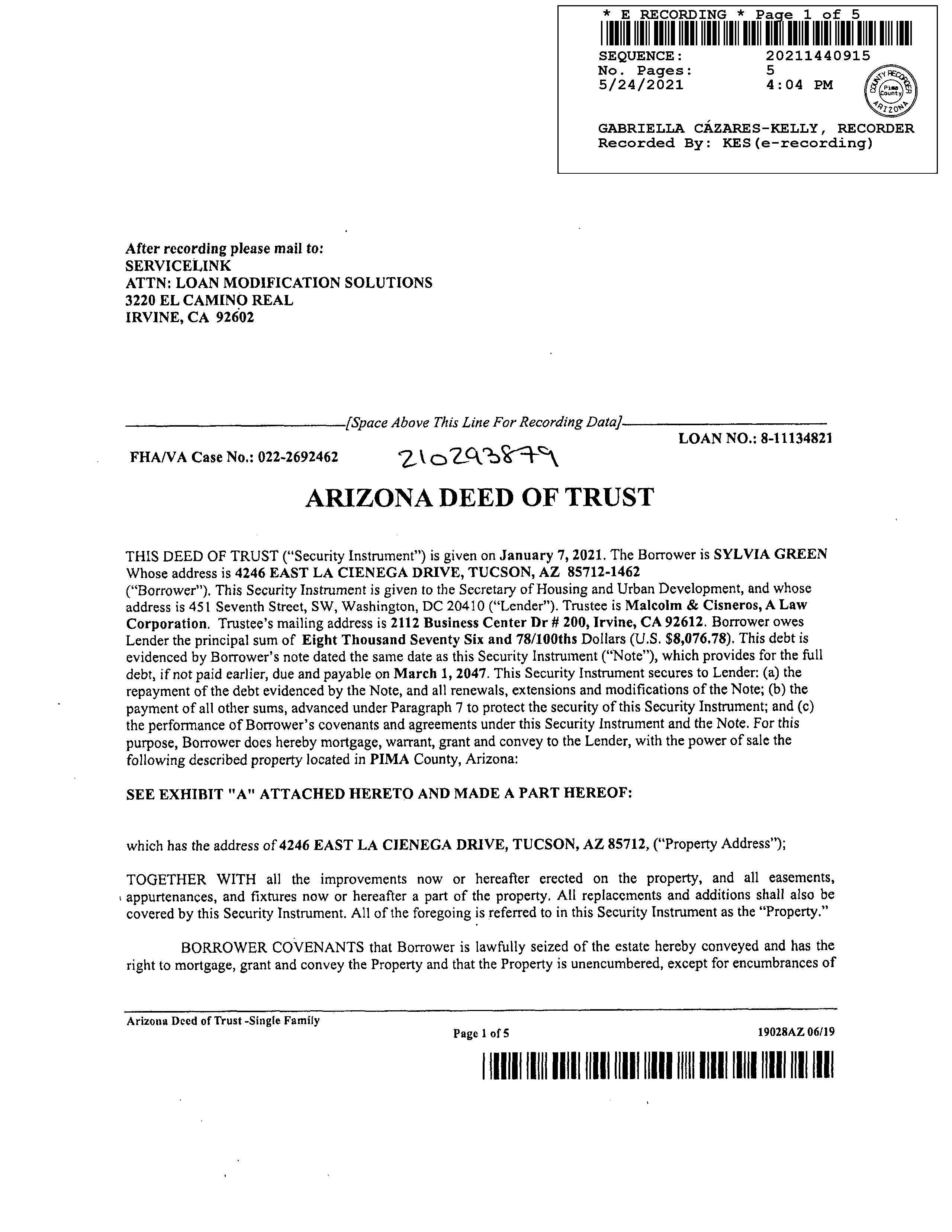 Subject Property : 4246 E La Cienega Dr Tucson AZ 85712