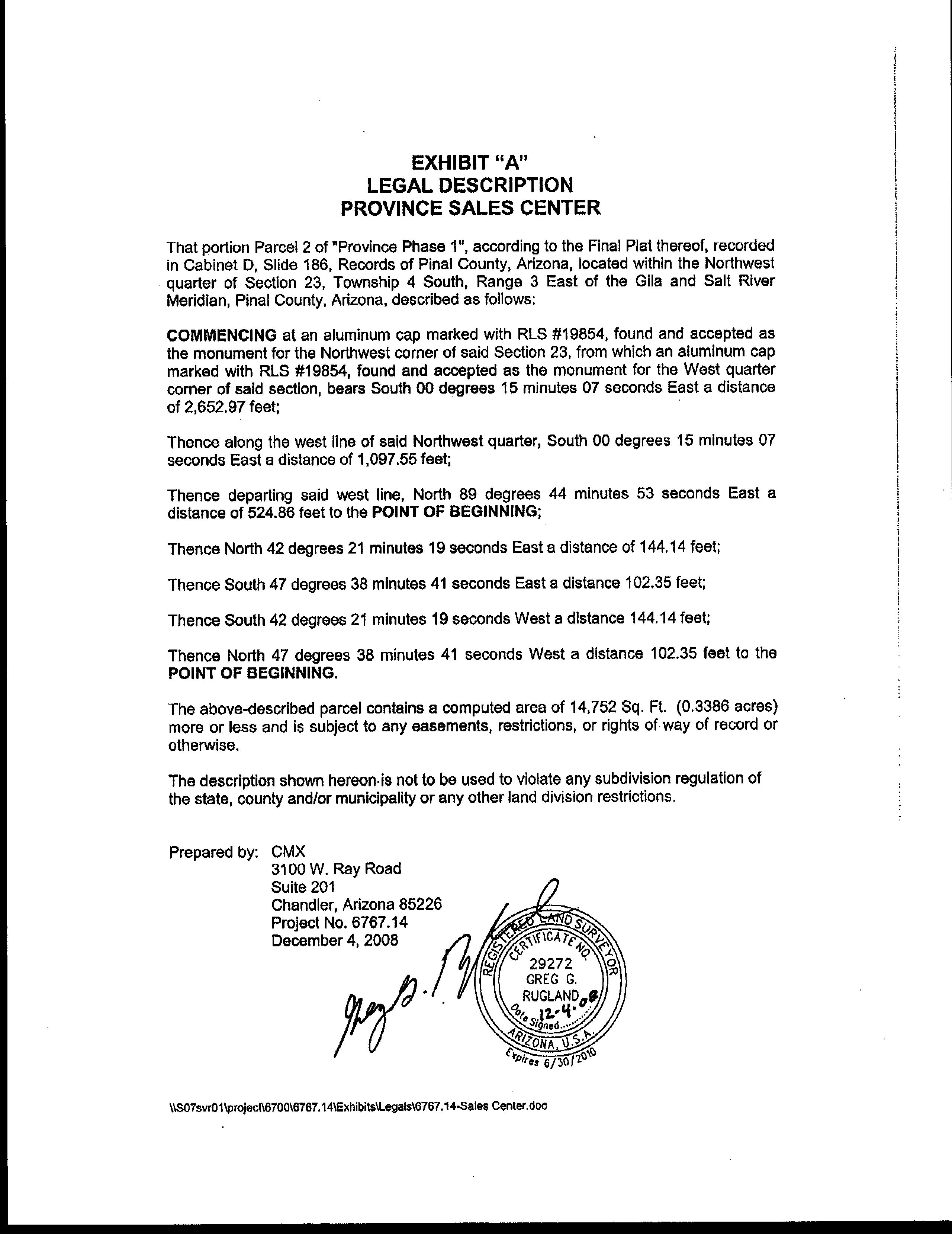 PINAL (PL), AZ Document:RES ASN 2009.26633 Page:4 of 4 Printed on:3/22/2023 9:46 AM Branch :FC0 User :JSTI