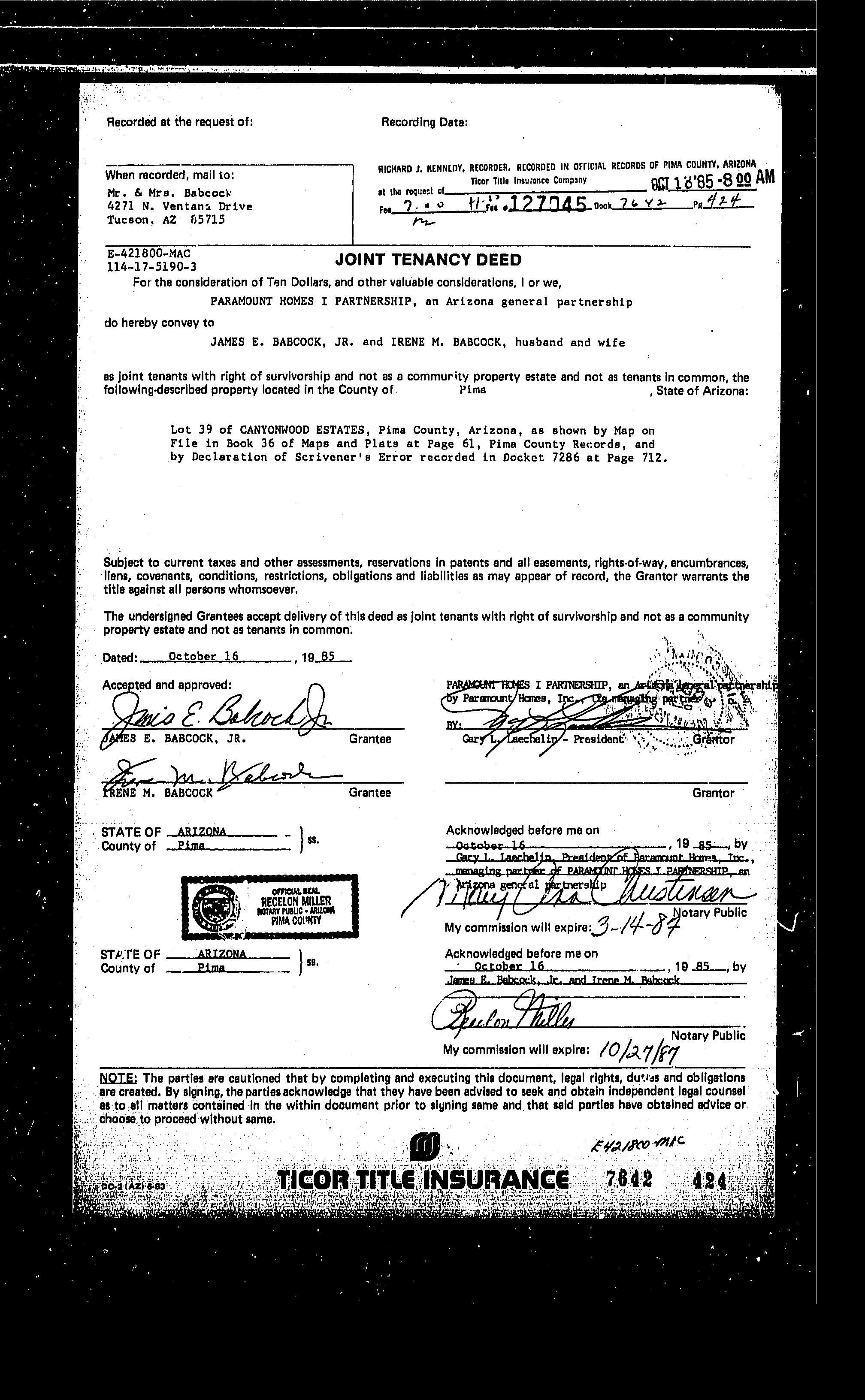 Recording/Sale Date : 10/18/1985 / 10/00/1985
