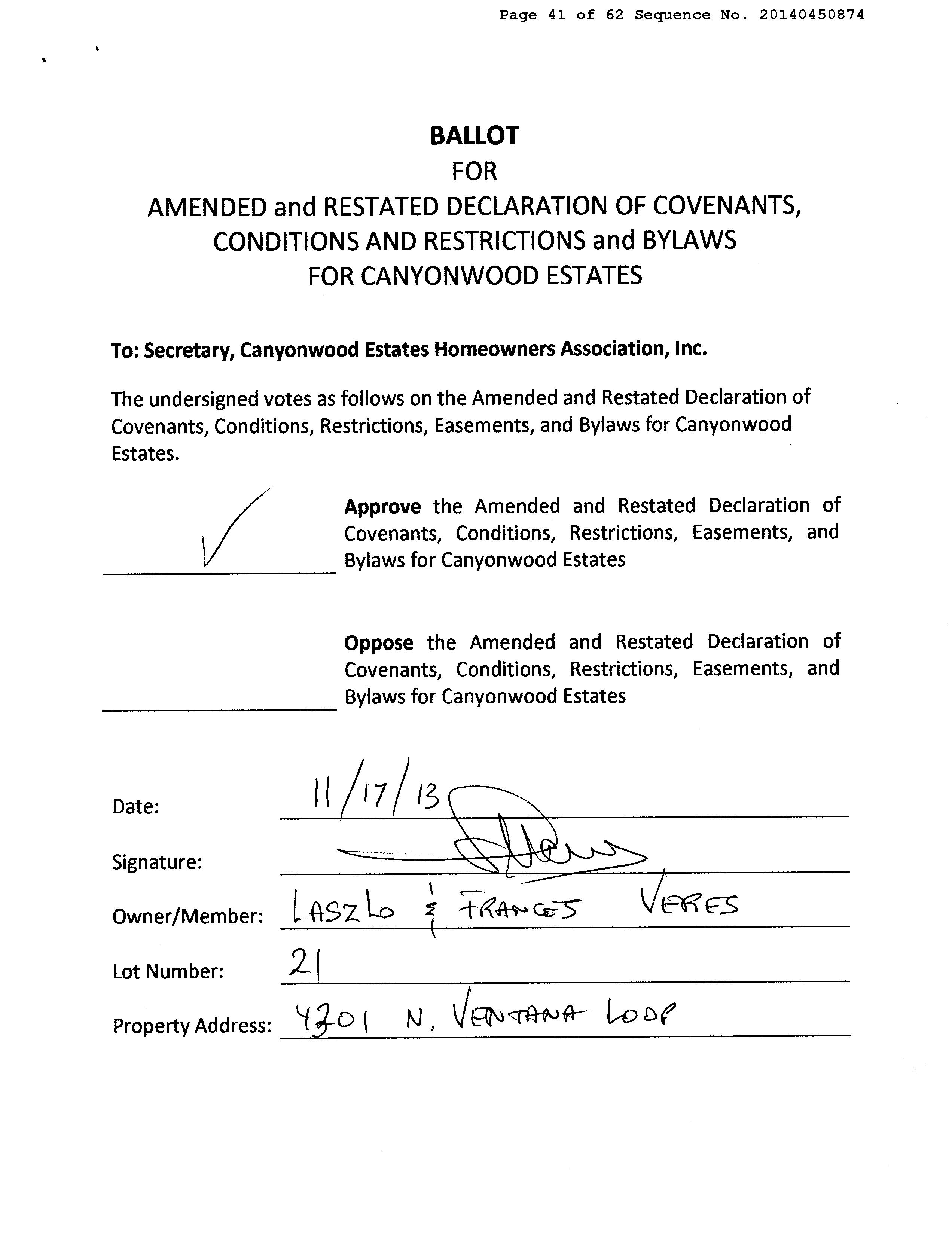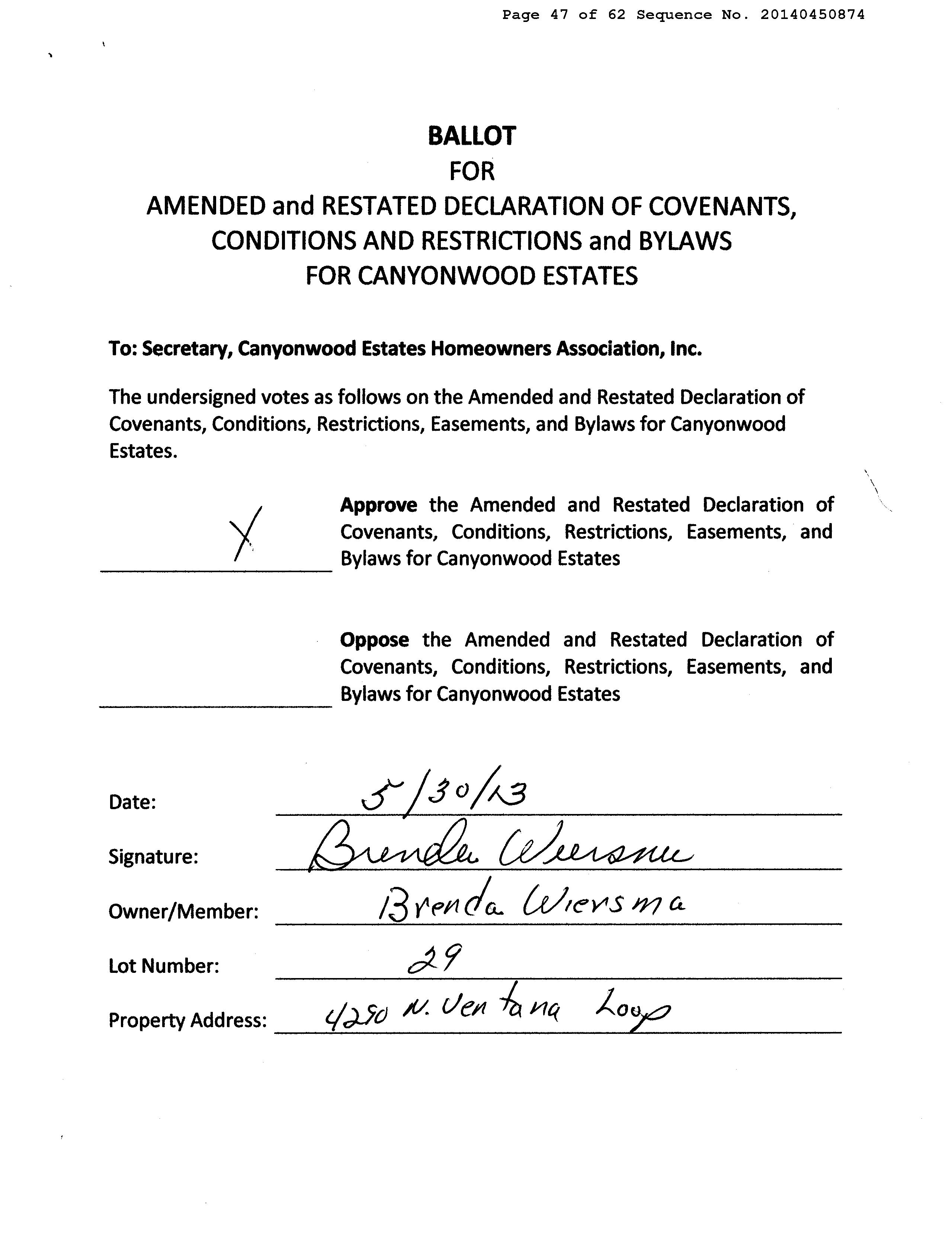 Owner Name : Lundquist Charles L Subdivision : Canyonwood Estates
