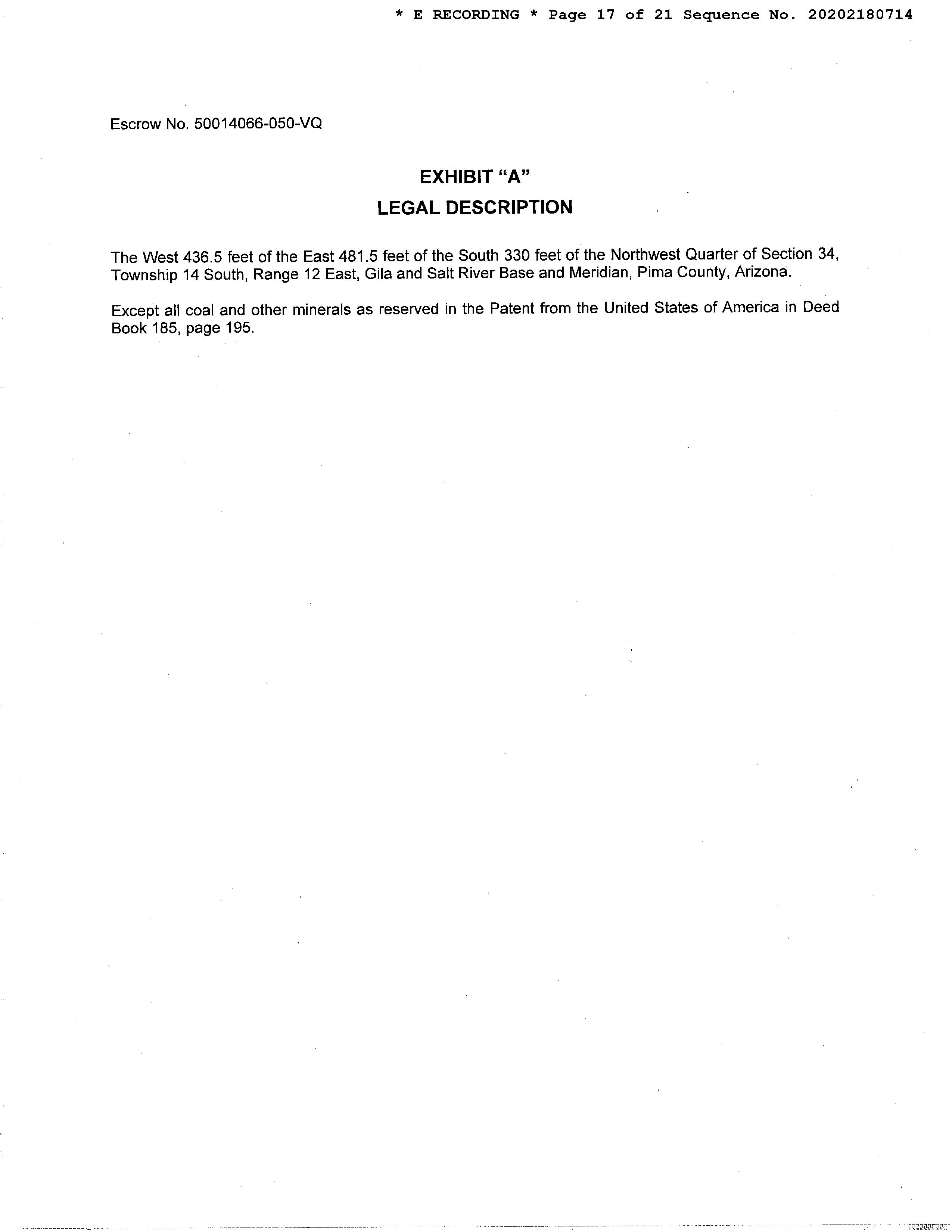 Legal Description : S330' W436.5' E481.5' Nw4 3.31 Ac Sec 34-14-12