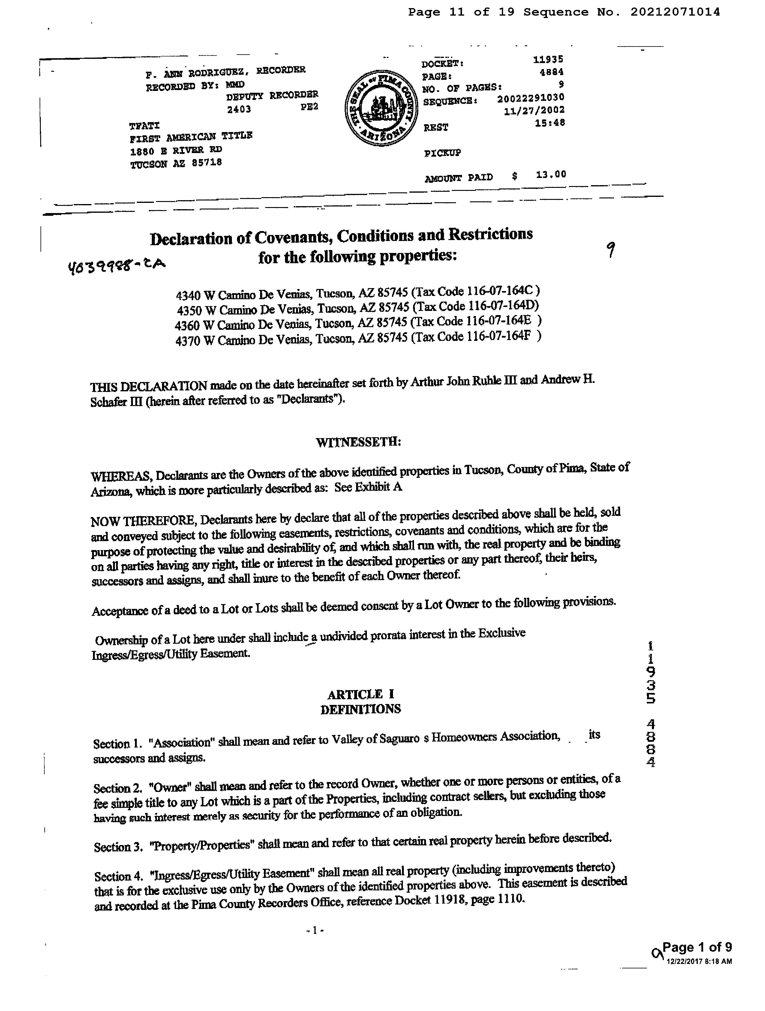 Mailing Address : 4350 W Camino De Venias, Tucson AZ 85745-9515 R064