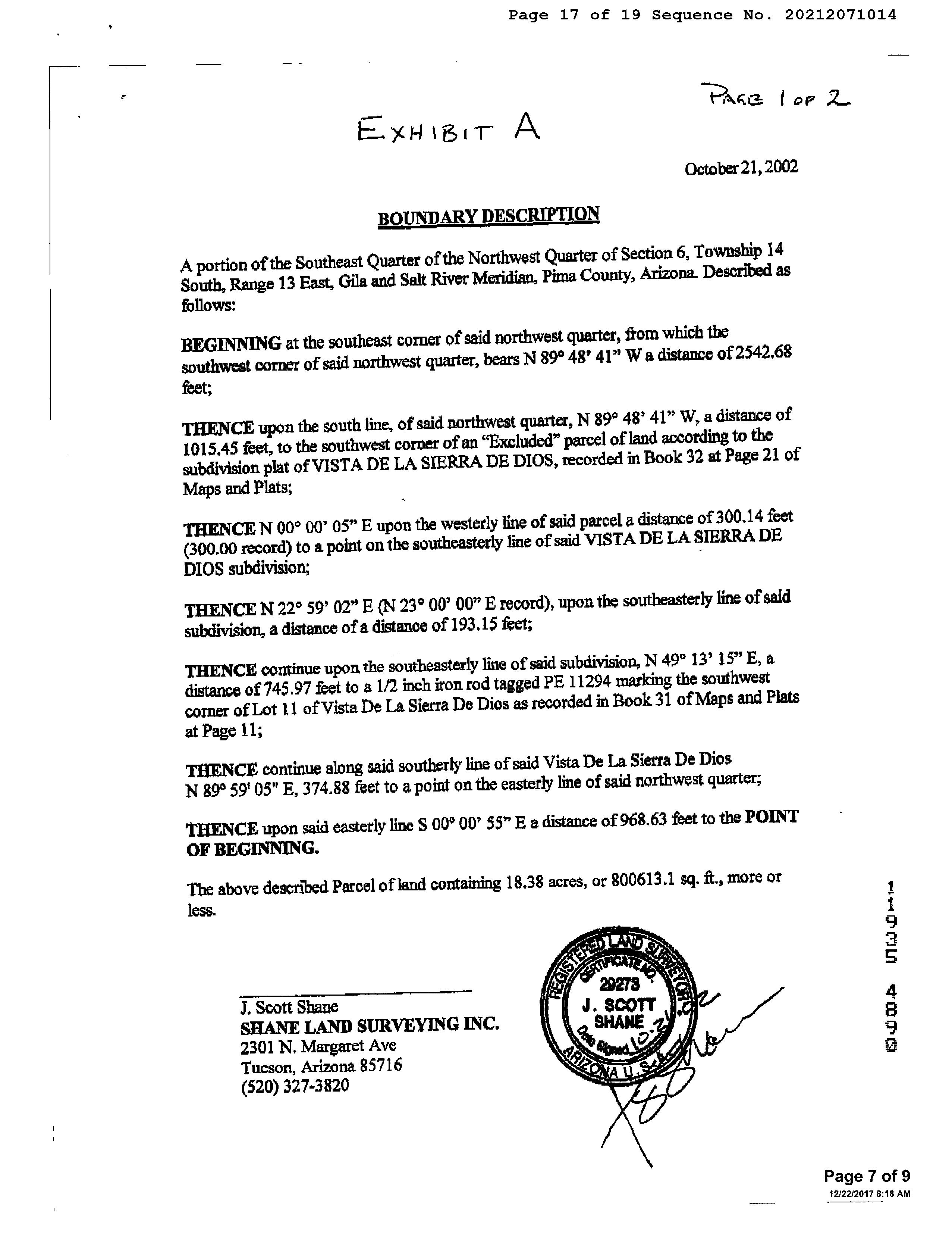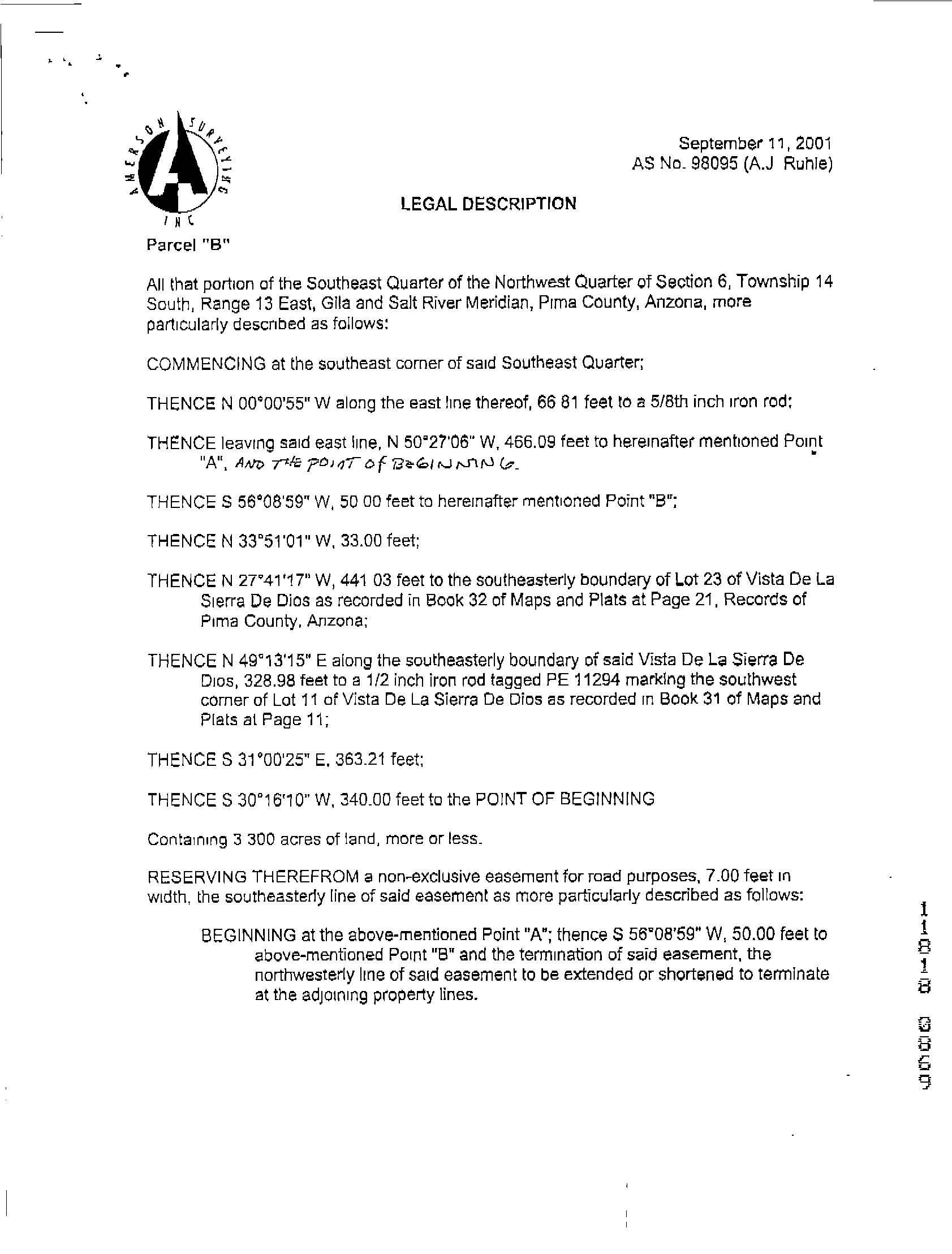Legal Description : Ptn Se4 Nw4 Lyg S & Adj To Vista De La Sierra De Dios 3.33 Ac Sec 6-14-13