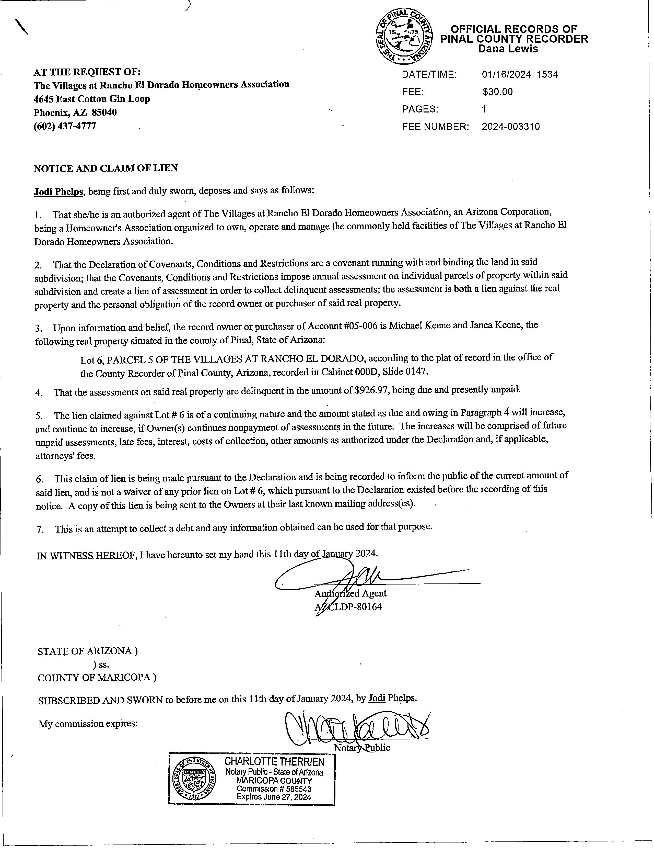 Subject Property: 43576 W Snow Dr Maricopa Az 85138 Owner Name: Keene Michael /Keene Janea APN / Alternate APN: 512-04-361 / Deed Type: Warranty Deed Land Use: Sfr Subdivision / Tract: Villages/rho El Dorado Prcl 05 / Lot Size: 6,534 Year Built / Eff: 2006 / Rec. Date / Price: 09/28/2020 / $340,000 Living Area: 3,182 # of units: Document #: 97812 Bedrooms: Pool: Total Tax Value: $302,584 Bath(F/H): / #1 43413 W Delia Blvd Maricopa Az 85138 Owner Name: Fields
