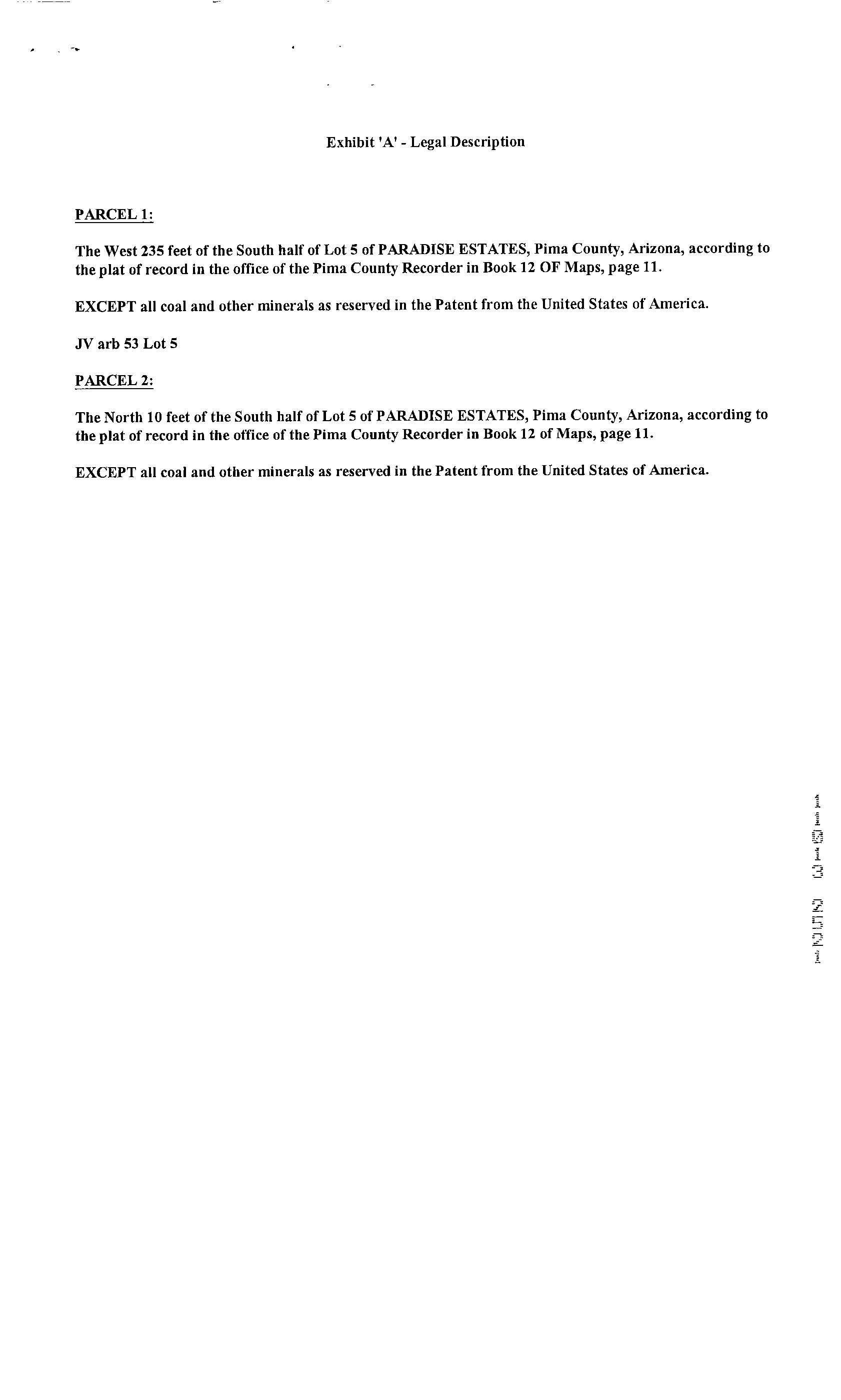 Mailing Address : 4360 S Palant Dr, Tucson AZ 85735 R038