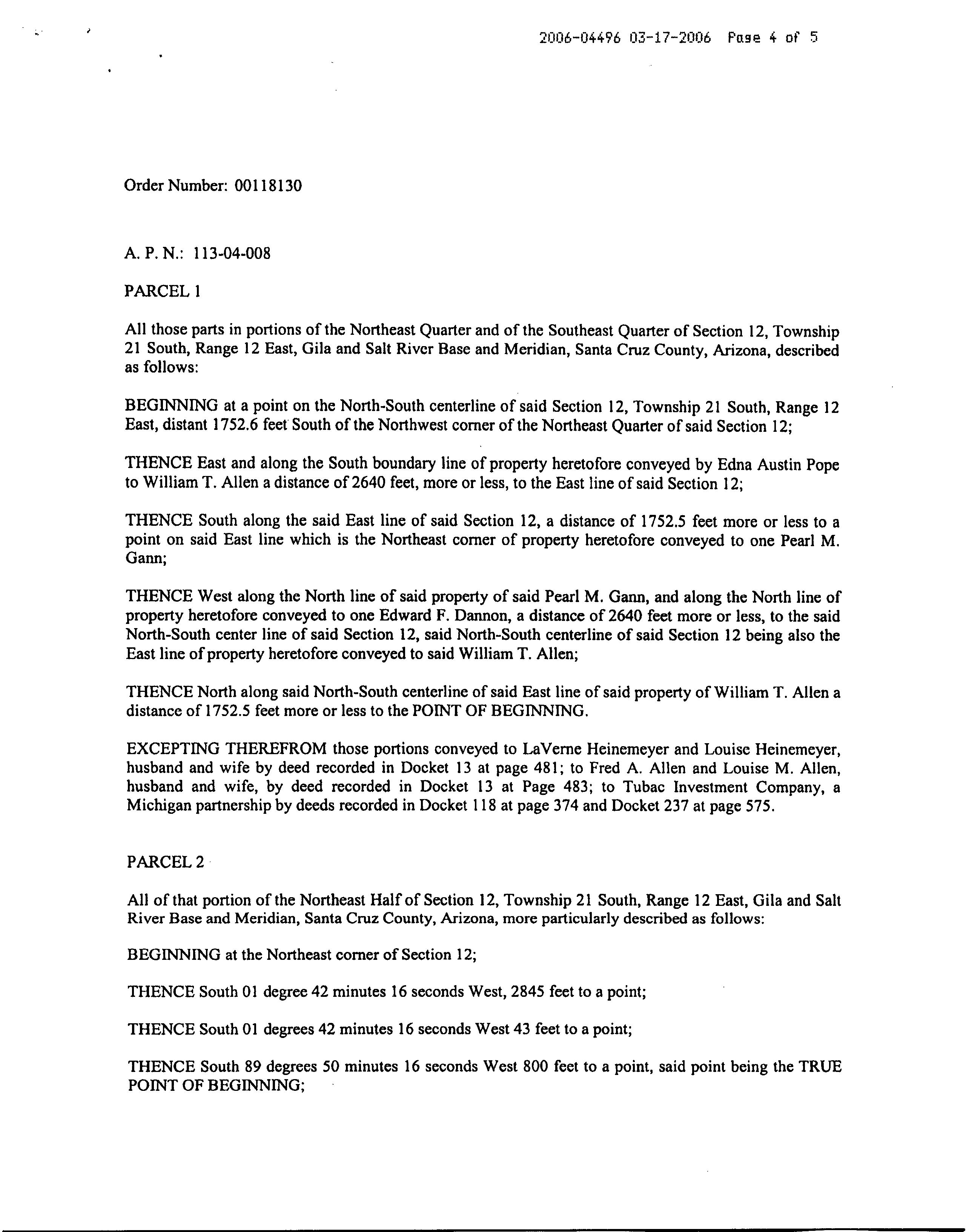 County : Santa Cruz, Az APN : 113-04-008