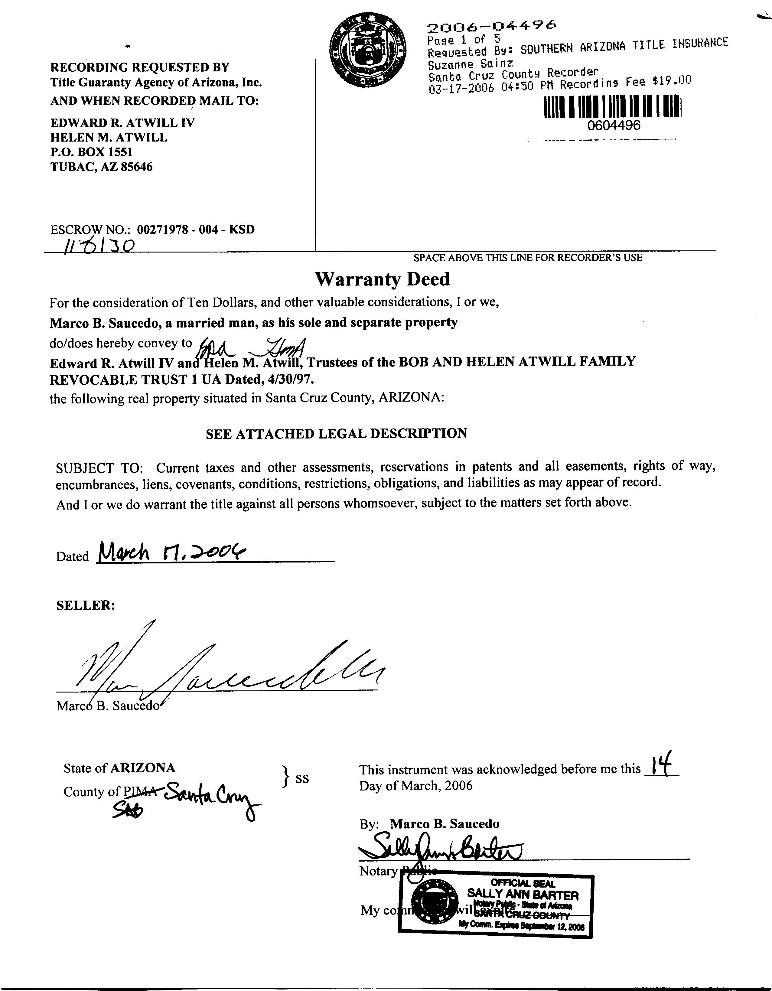 Title Company : Southern Az Title Ins Agcy