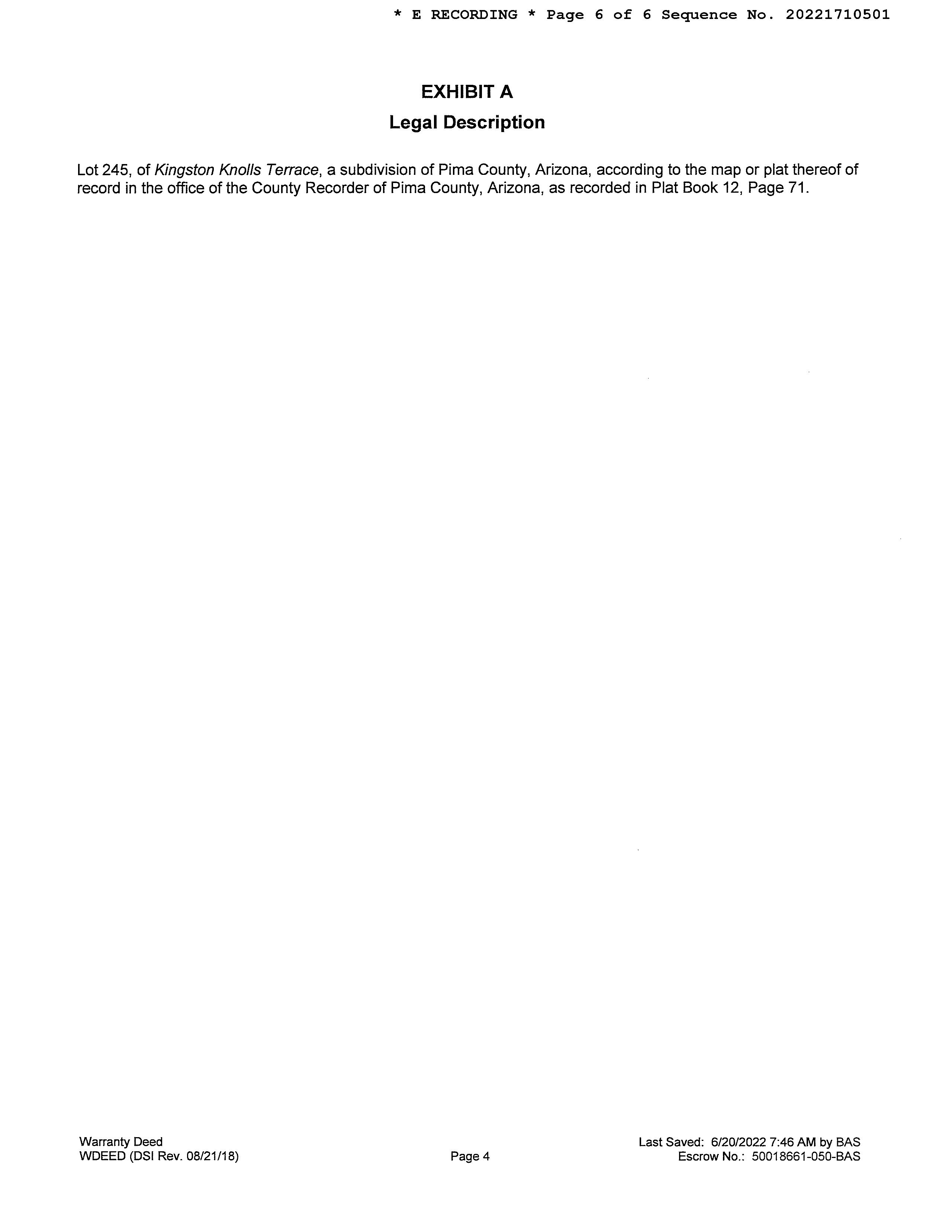 #7 6607 E Paseo San Ciro Tucson Az 85710 Owner Name: Hielema Eric J /Hill Kara