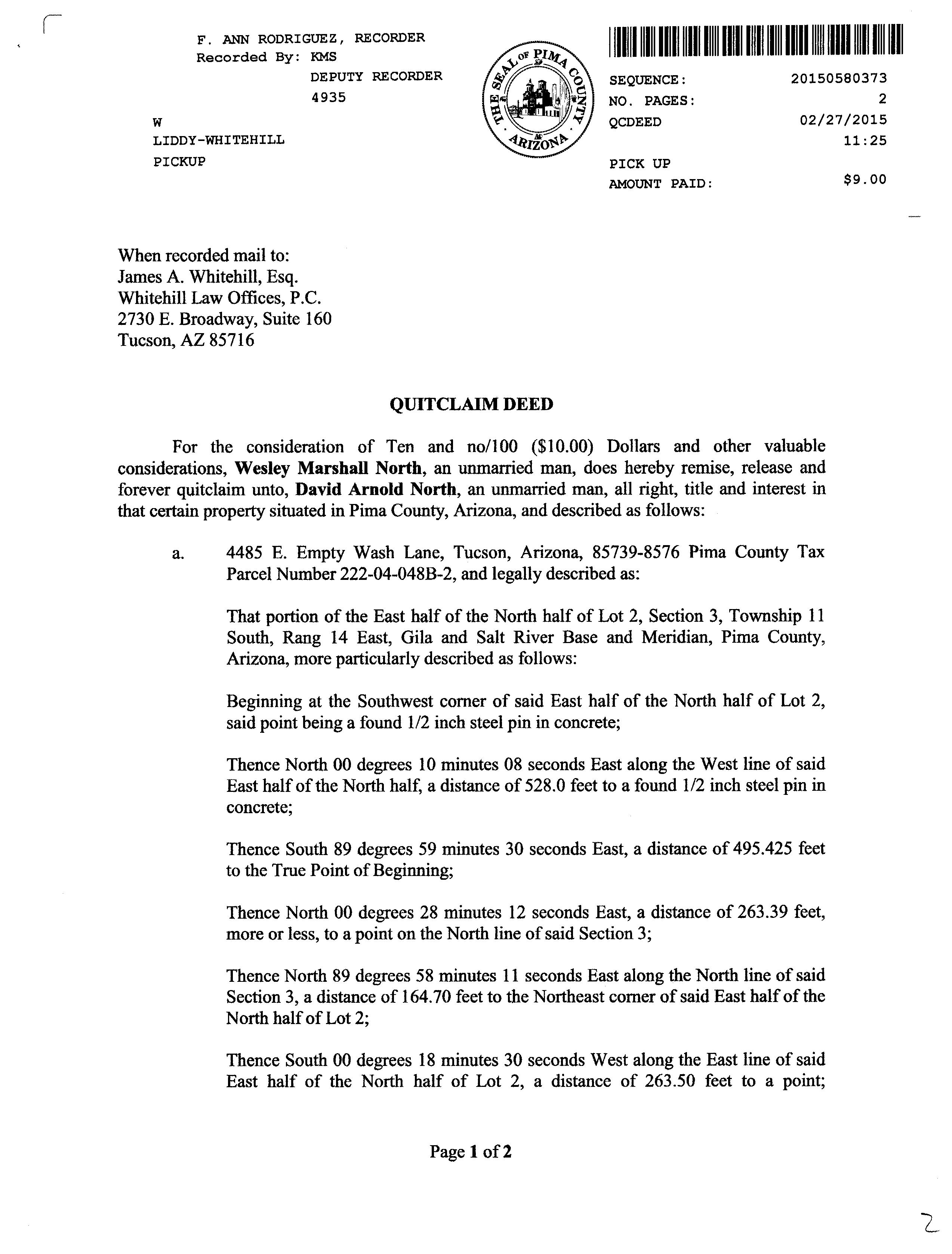 Recording/Sale Date : 02/27/2015 / 02/17/2015 Deed Type : Quit Claim Deed
