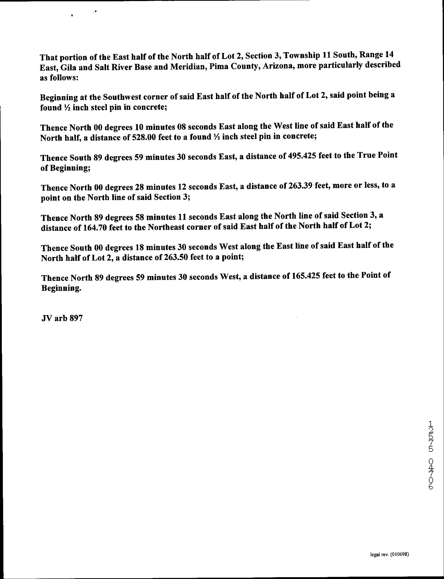 Legal Description : E164.7' N263.5' E2 N2 Lot 2 1 Ac Sec 3-11-14