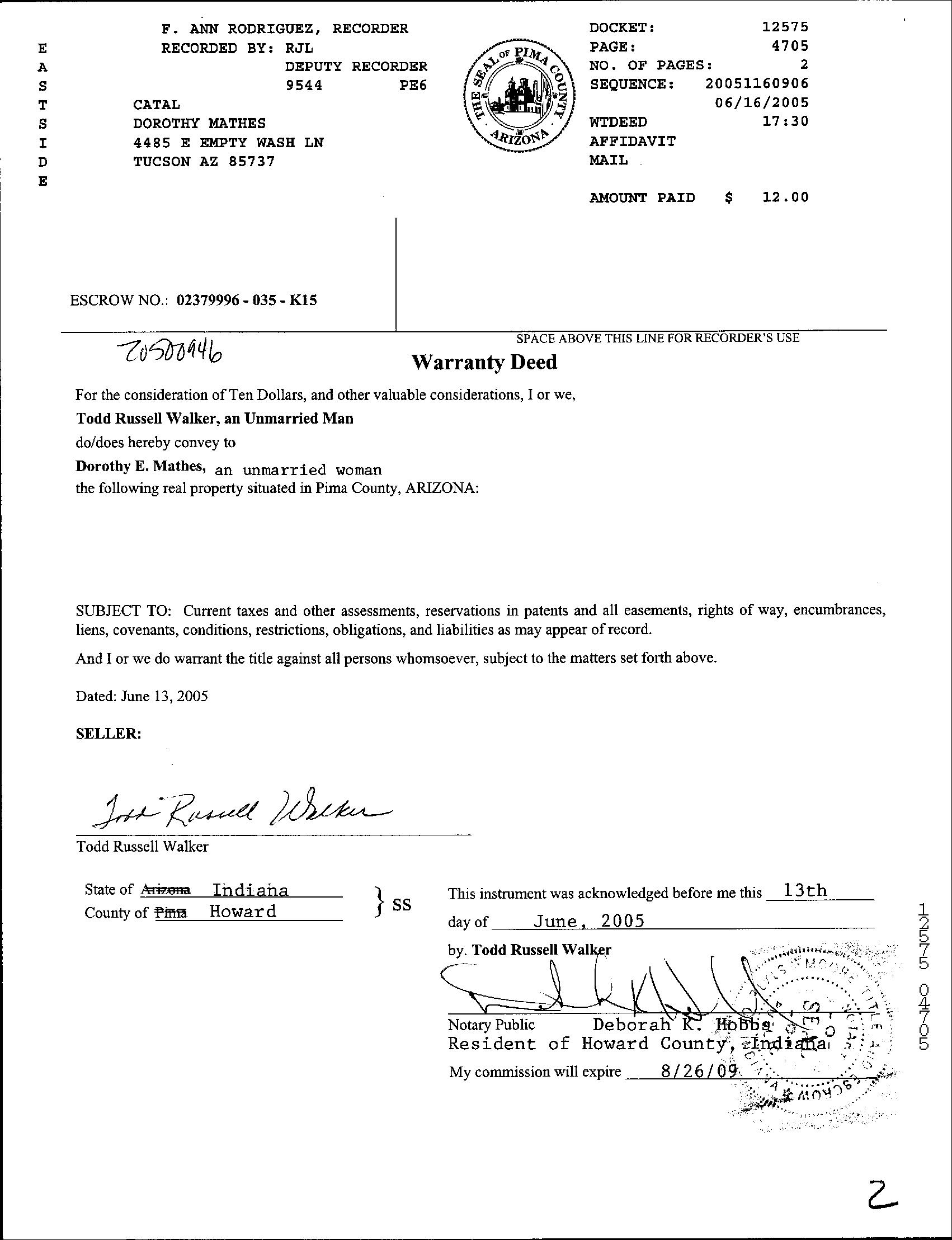 Mailing Address : 4485 E Empty Wash Ln, Tucson AZ 85739-8576 R042