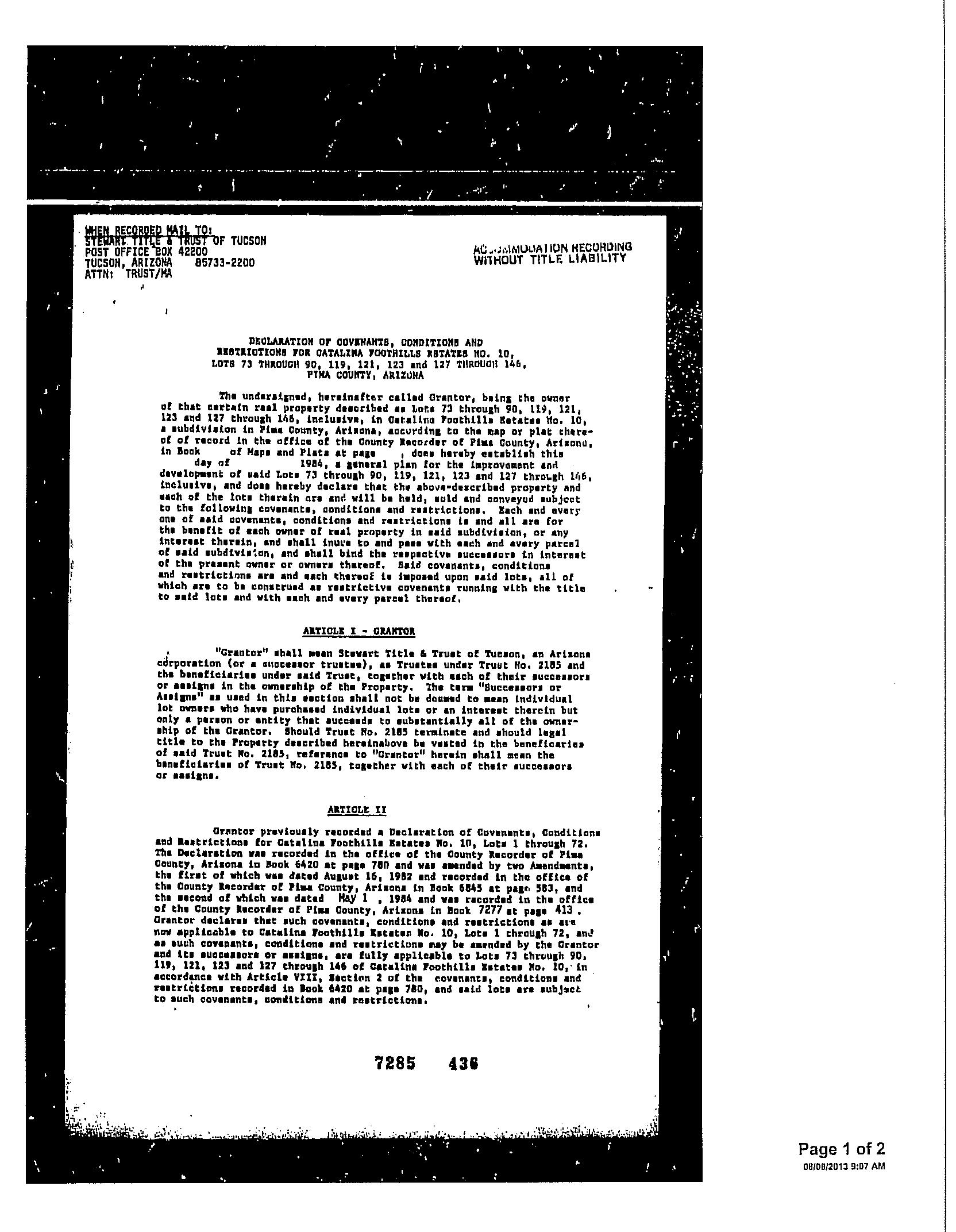 This report is not an insured product or service or a representation of the condition of title to real property. It is not an abst ract, legal opinion, opinion of title, title insurance commitment or preliminary report, or any form of Title Insurance or Guaranty. This report is issued exclusively for the benefit of the Applicant therefor and may not be used or relied upon by any other person. This report may not be reproduced in any manner without First American or Title Security's prior written consent. First American or Title Security does not represent or warrant that the information herein is complete or free from error, and the information herein is provided without any warranties of any kind, as-is, and with all faults. As a material part of the consideration given in exchange for the issuance of this report, recipient agrees that First American or Title Security's sole liability for any loss or damage caused by an error or omission due to inaccurate information or negligence in preparing this report shall be limited to the fee charged for the report. Recipient accepts this report with this limitation and agrees that First American or Title Security would not have issued this report but for the limitation of liability described above. First American or Title Security makes no representation or warranty as to the legality or propriety of recipient's use of the information herein.