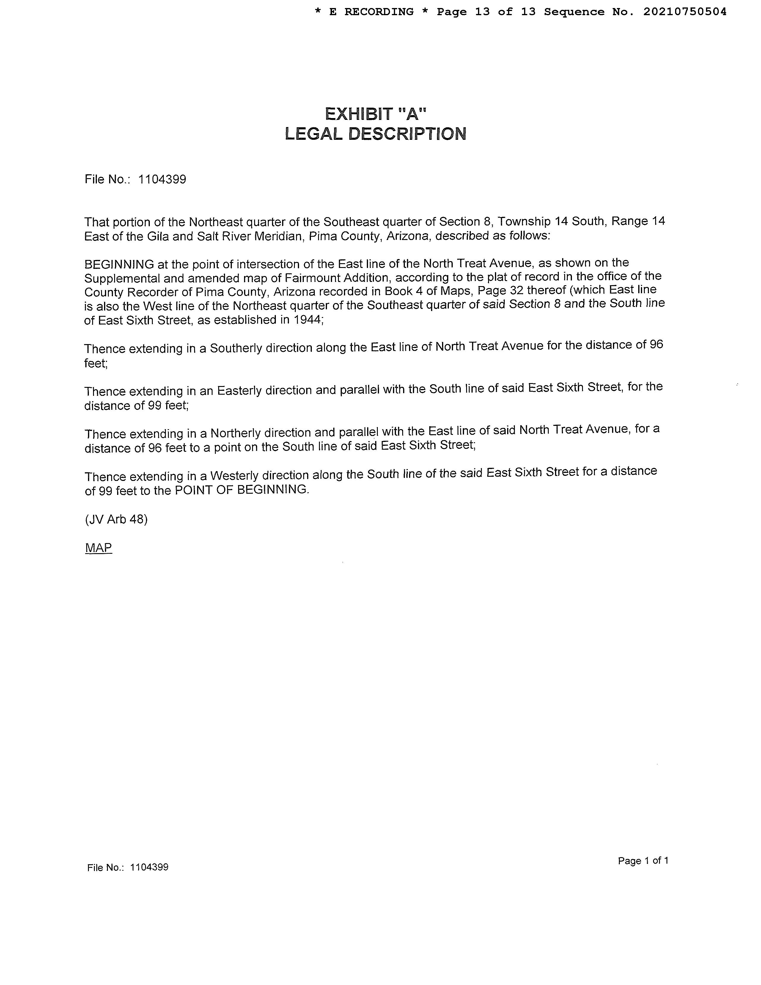 Subject Property : 454 N Treat Ave Tucson AZ 85716