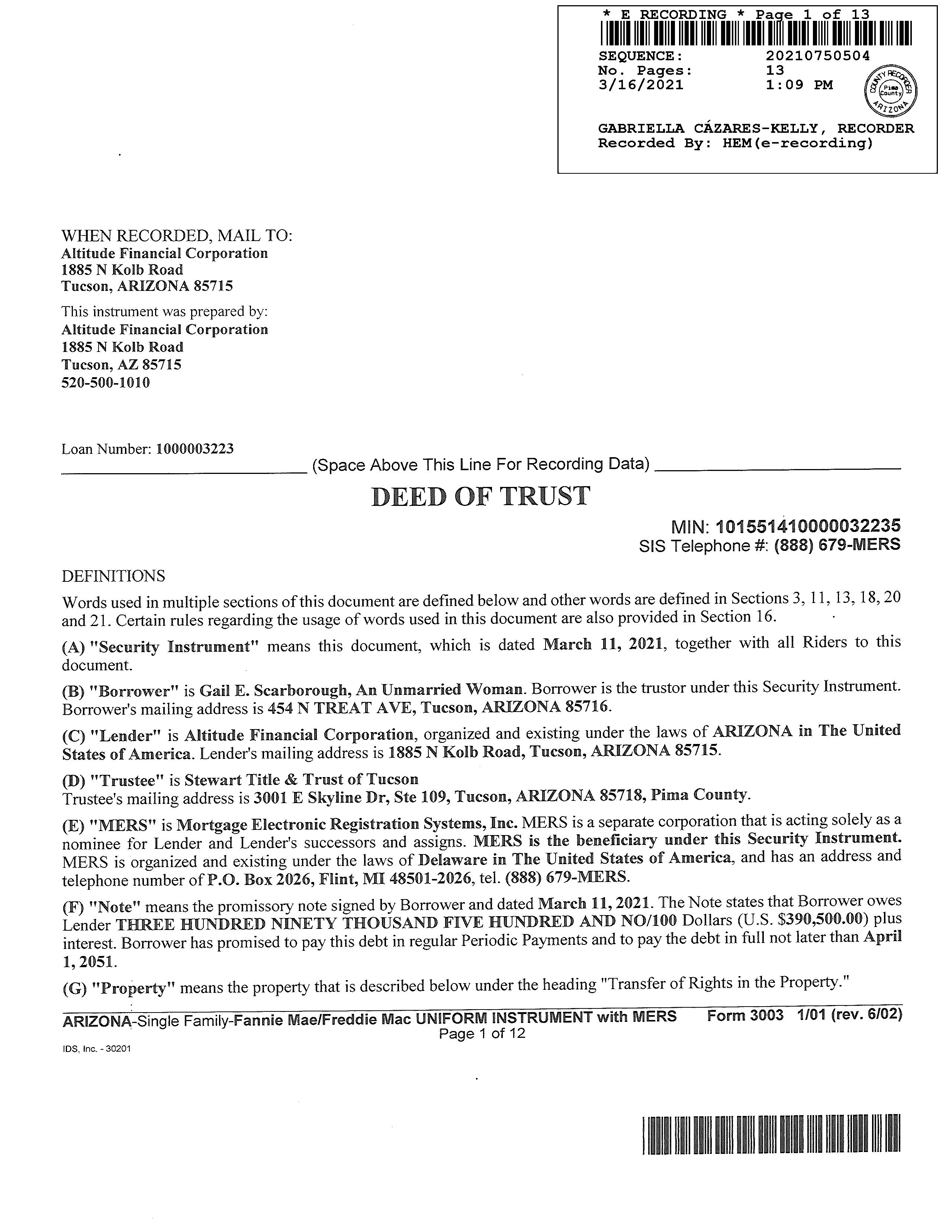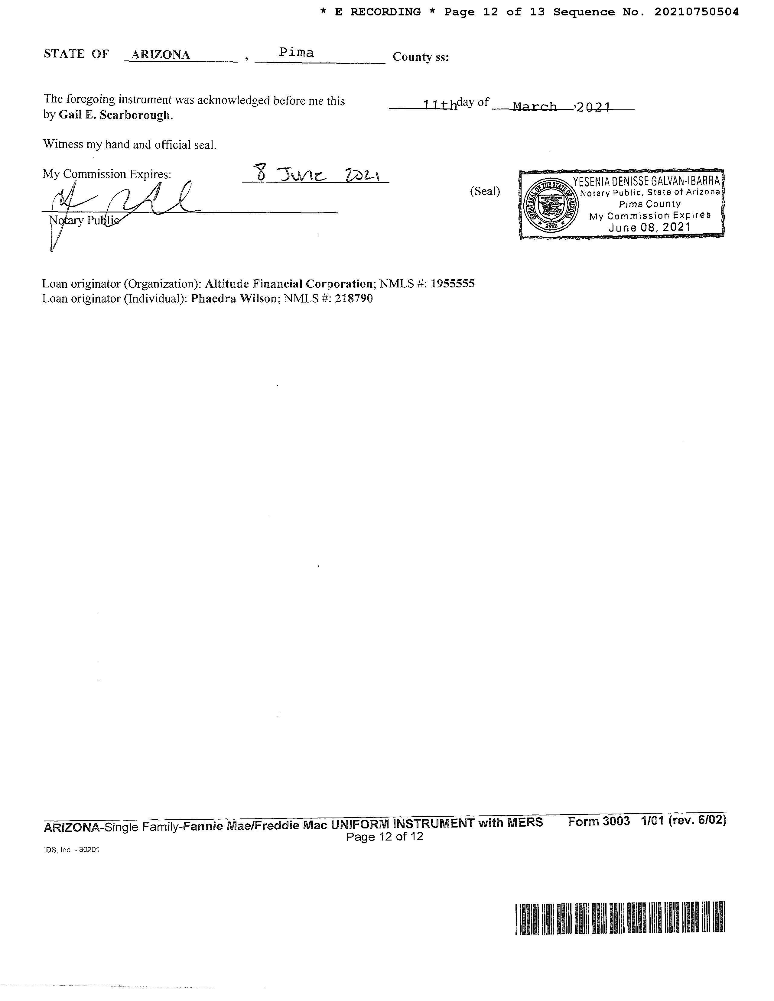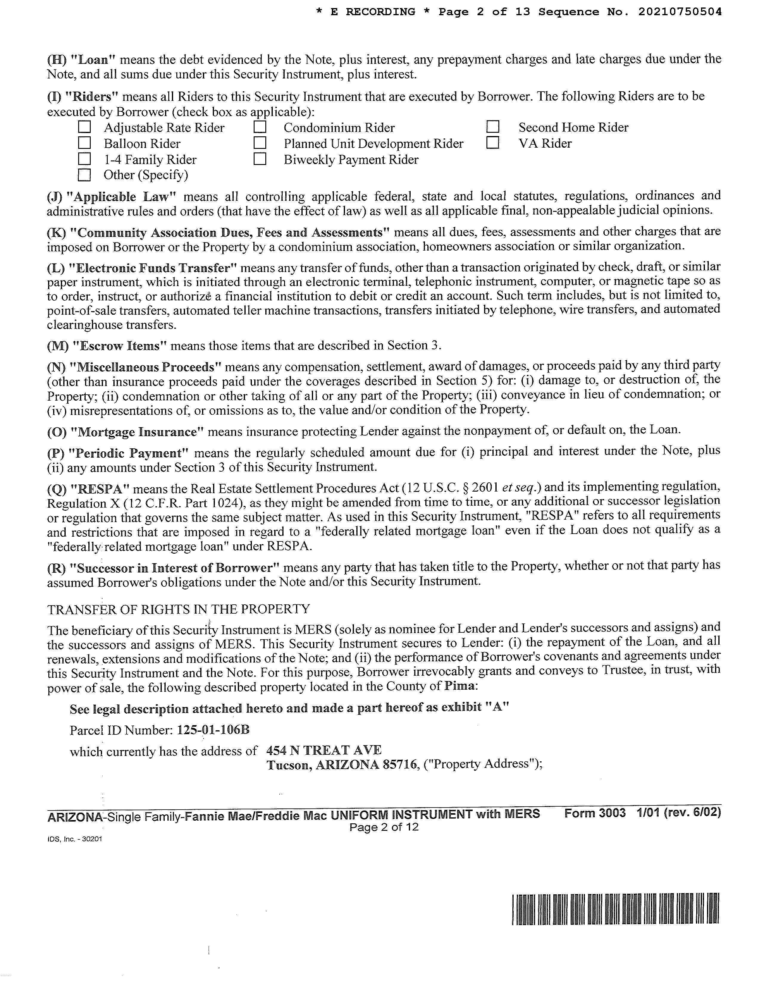 915 N Camino Miramonte Tucson Az 85716 Owner Name: Walti Marielle Aulikki /Hegetschweiler Michael Jacob