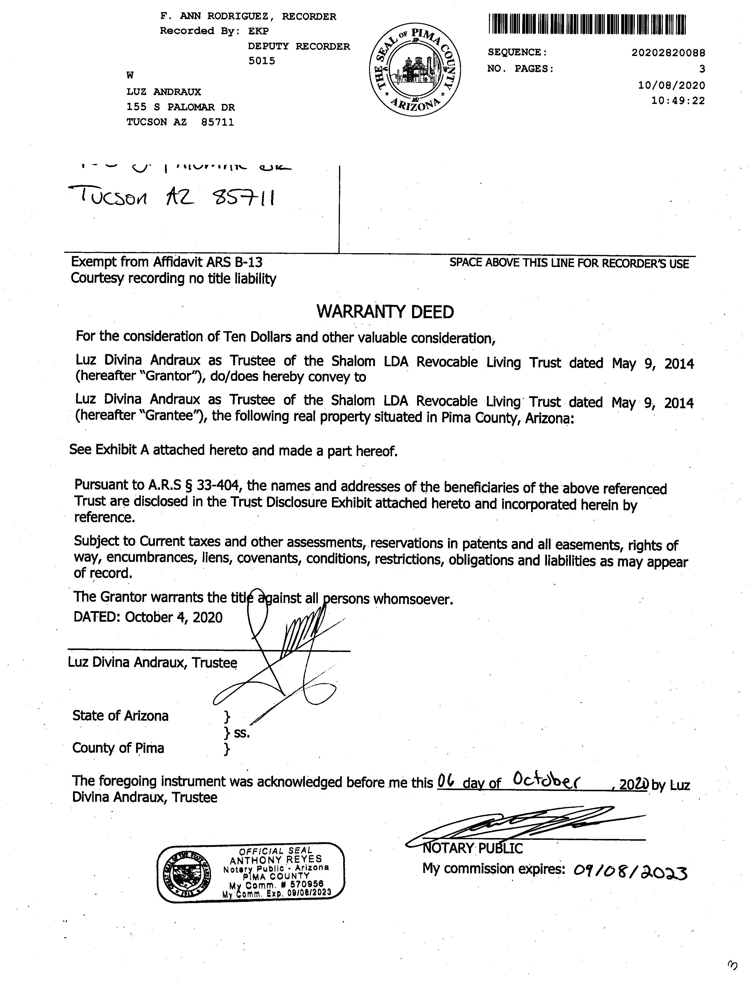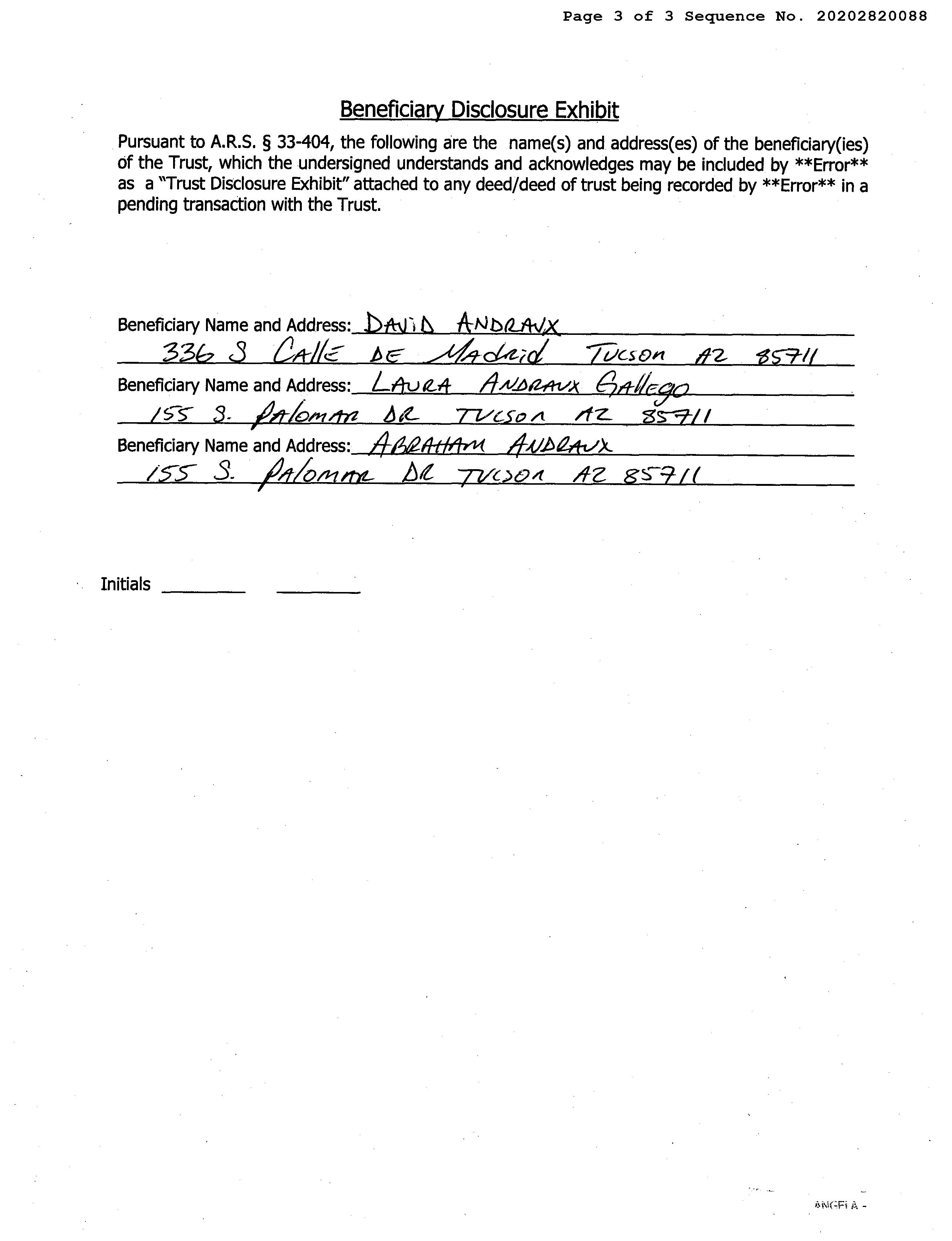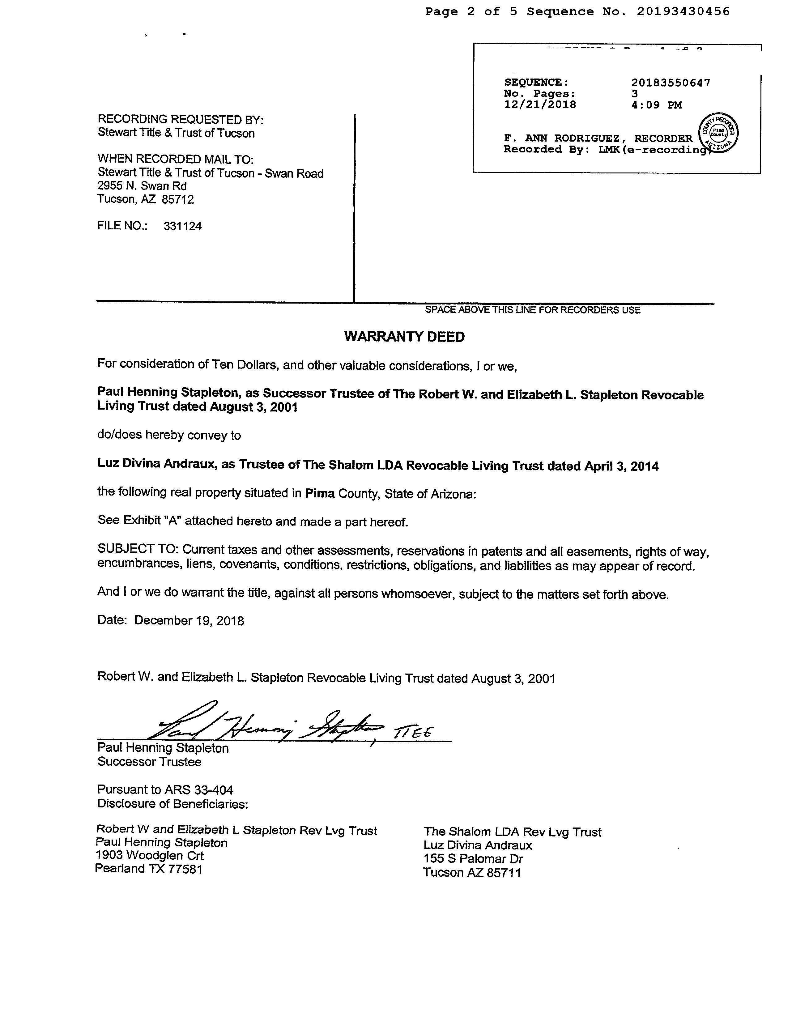 Mailing Address : 155 S Palomar Dr, Tucson AZ 85711-3449 C003