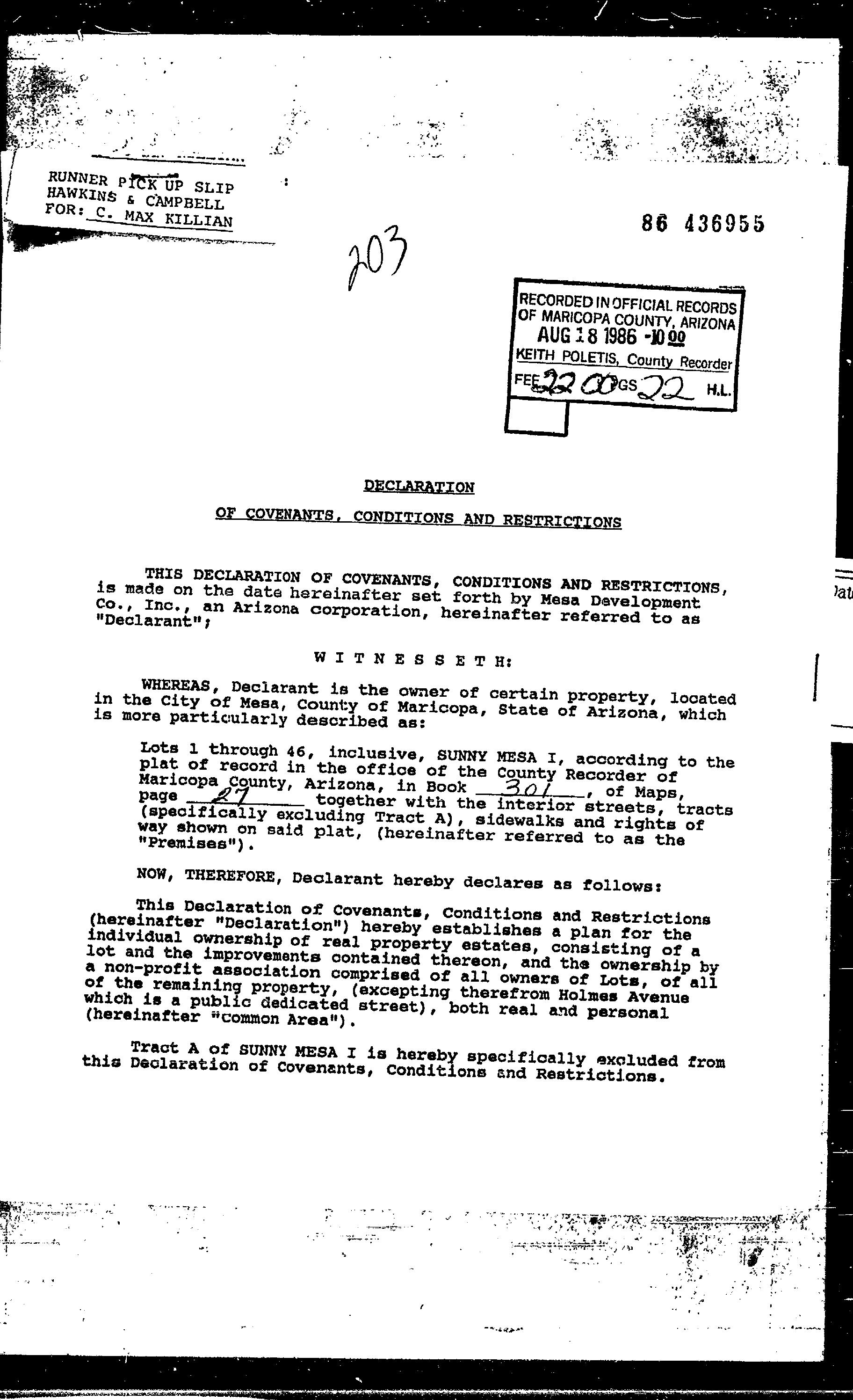MARICOPA, AZ Document:RES 1986.436955 Page:1 of 22 Printed on:2/1/2023 4:28 PM Branch :FC0 User :JSTI