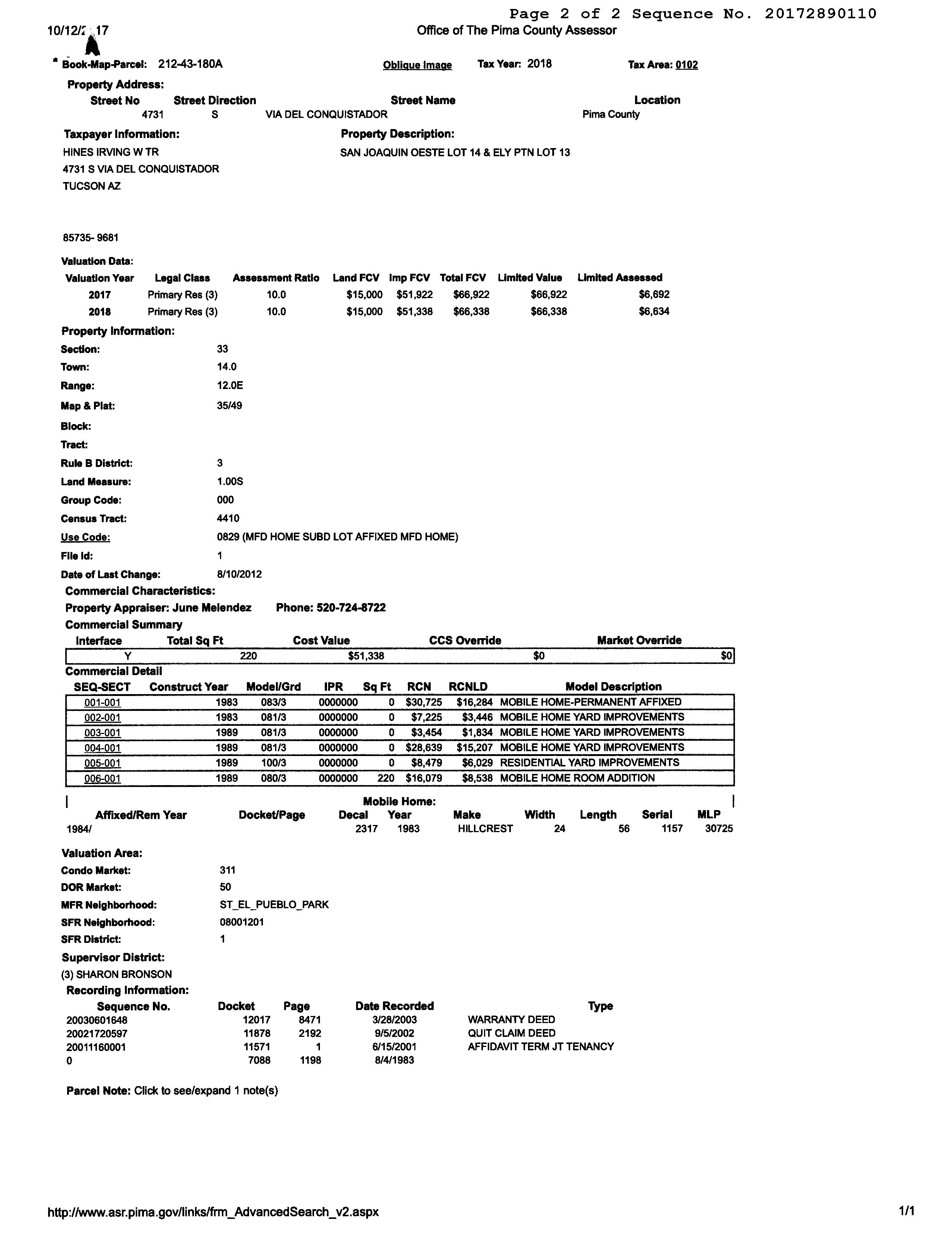 Mailing Address : 4731 S Via Del Conquistador, Tucson AZ 85735-9681 R090