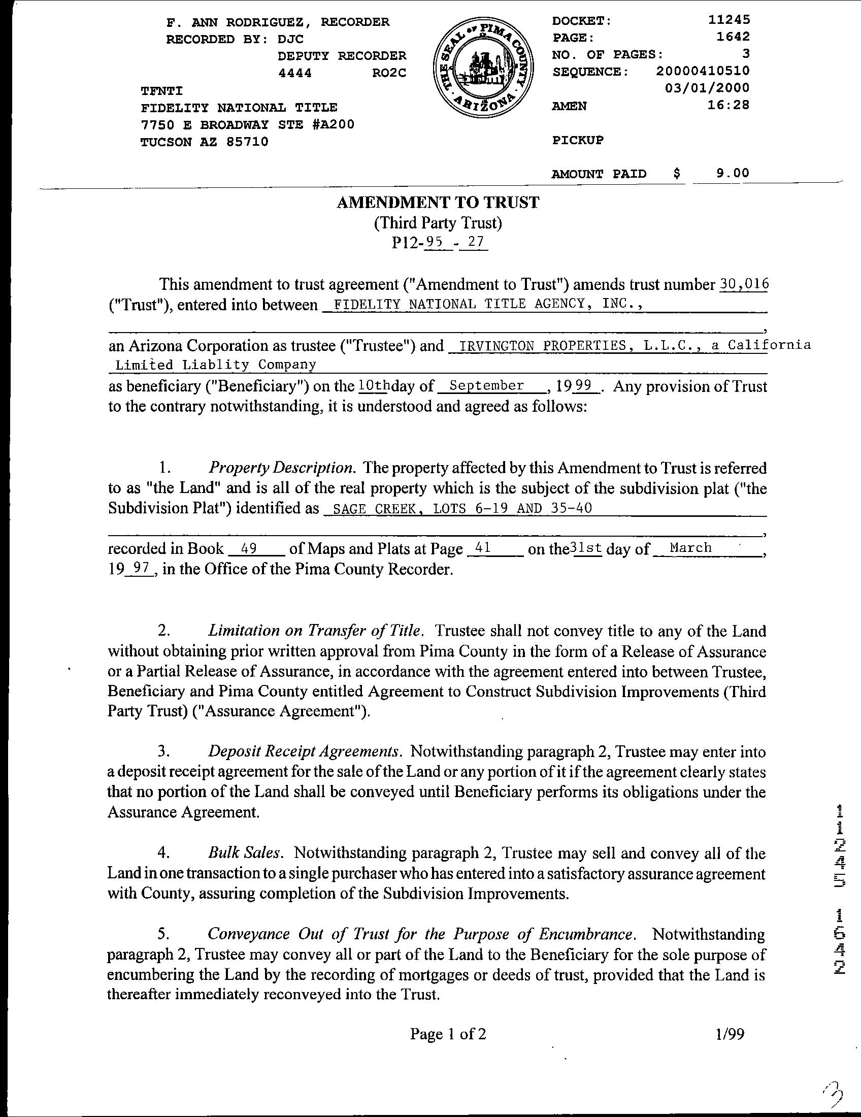 This report is not an insured product or service or a representation of the condition of title to real property. It is not an abst ract, legal opinion, opinion of title, title insurance commitment or preliminary report, or any form of Title Insurance or Guaranty. This report is issued exclusively for the benefit of the Applicant therefor and may not be used or relied upon by any other person. This report may not be reproduced in any manner without First American or Title Security's prior written consent. First American or Title Security does not represent or warrant that the information herein is complete or free from error, and the information herein is provided without any warranties of any kind, as-is, and with all faults. As a material part of the consideration given in exchange for the issuance of this report, recipient agrees that First American or Title Security's sole liability for any loss or damage caused by an error or omission due to inaccurate information or negligence in preparing this report shall be limited to the fee charged for the report. Recipient accepts this report with this limitation and agrees that First American or Title Security would not have issued this report but for the limitation of liability described above. First American or Title Security makes no representation or warranty as to the legality or propriety of recipient's use of the information herein.