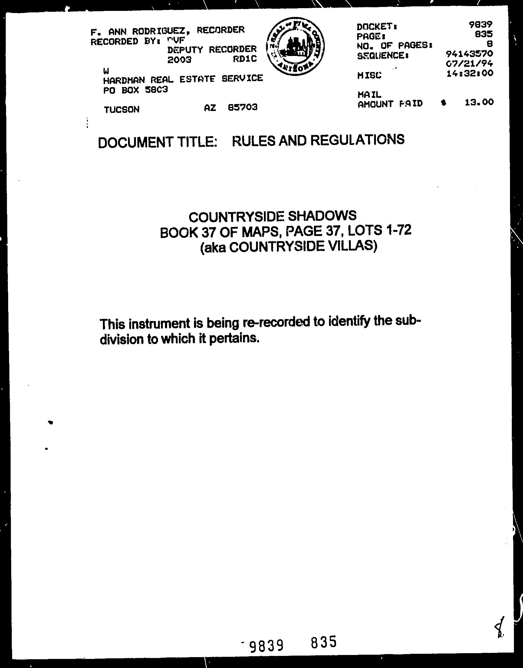 PIMA, AZ Document:SUBDIVISION_MAP 37.37 Page:1 of 2 Printed on:7/13/2023 10:18 AM Branch :FC0 User :JSTI