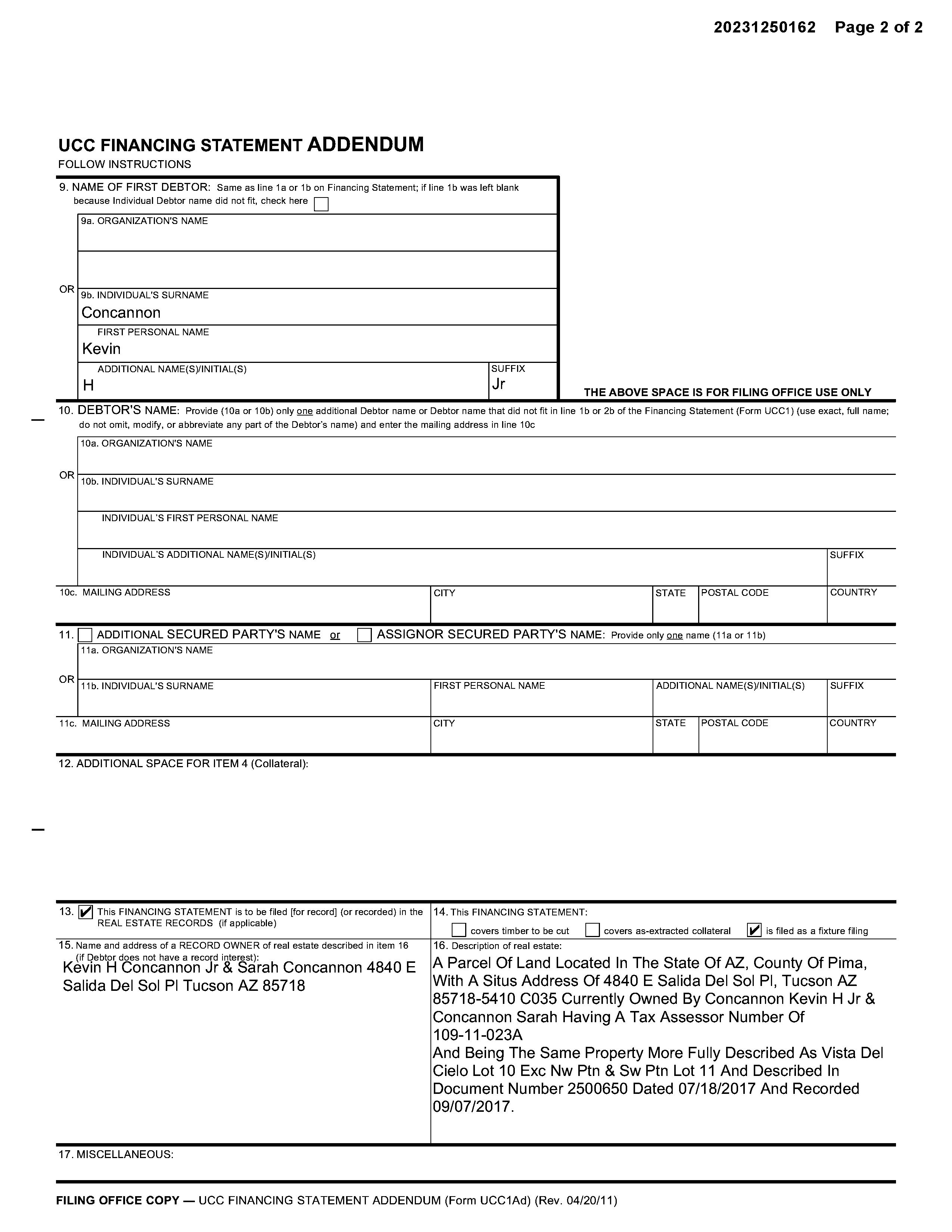 Mailing Address : 4840 E Salida Del Sol Pl, Tucson AZ 85718-5410 C035