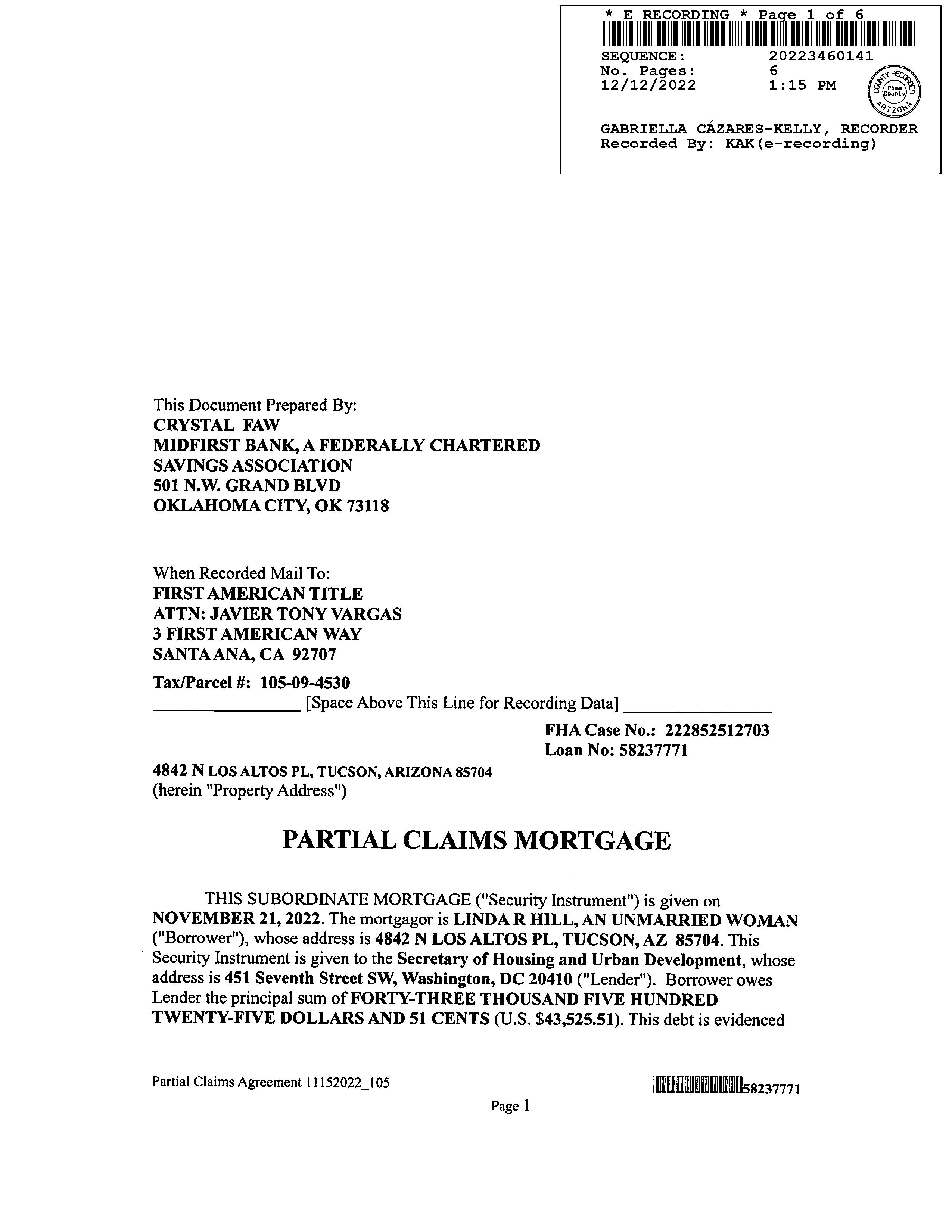 Mailing Address : 4842 N Los Altos Pl, Tucson AZ 85704-5732 C006