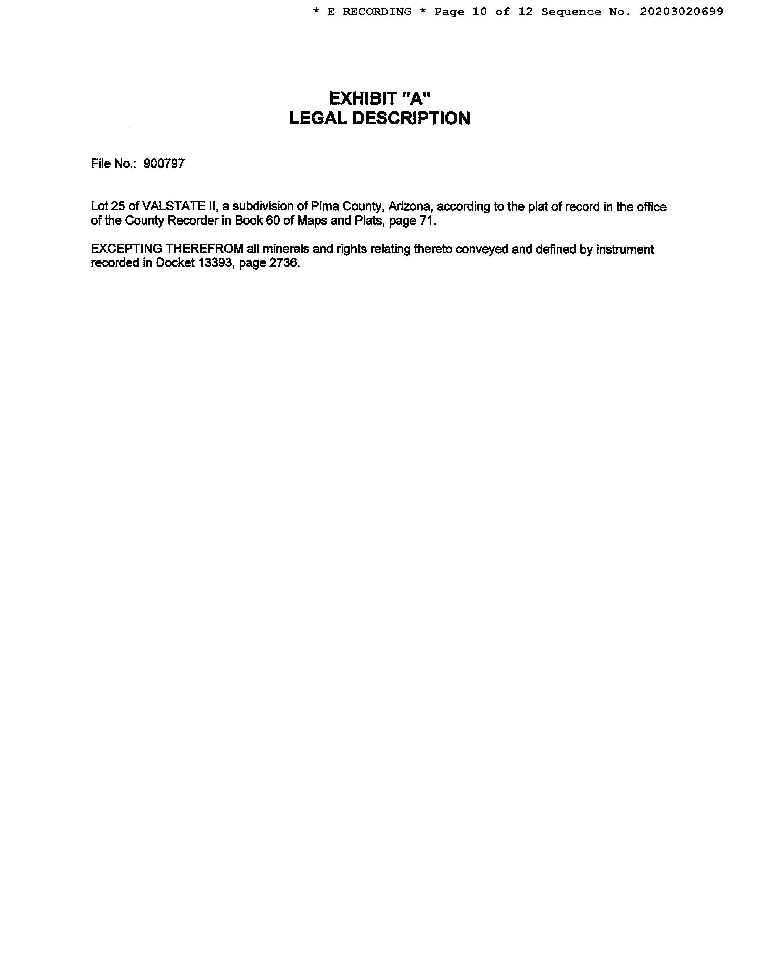 Owner Name : Southern Az Land Tr Inc Subdivision : Valstate