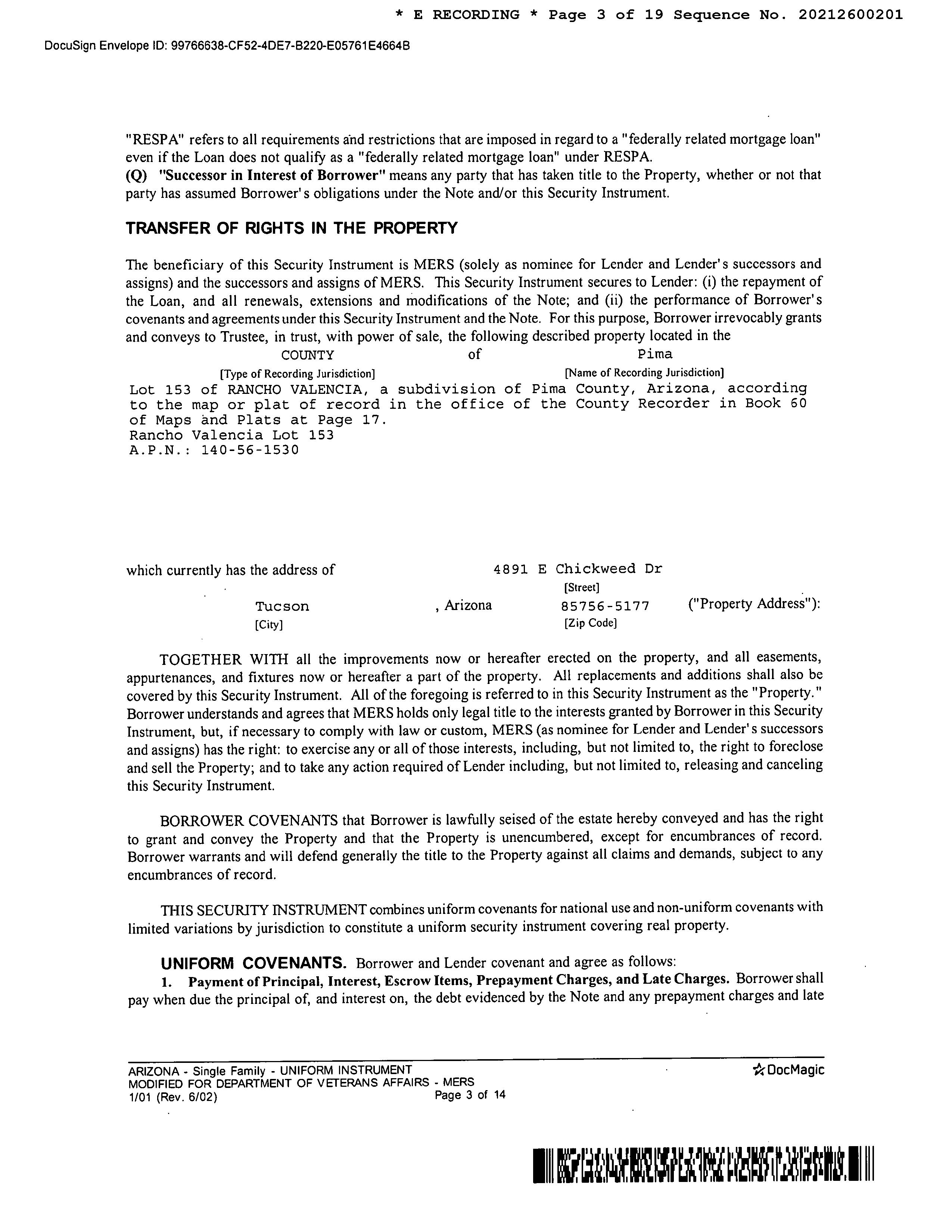 Mailing Address : 4891 E Chickweed Dr, Tucson AZ 85756-5177 C026