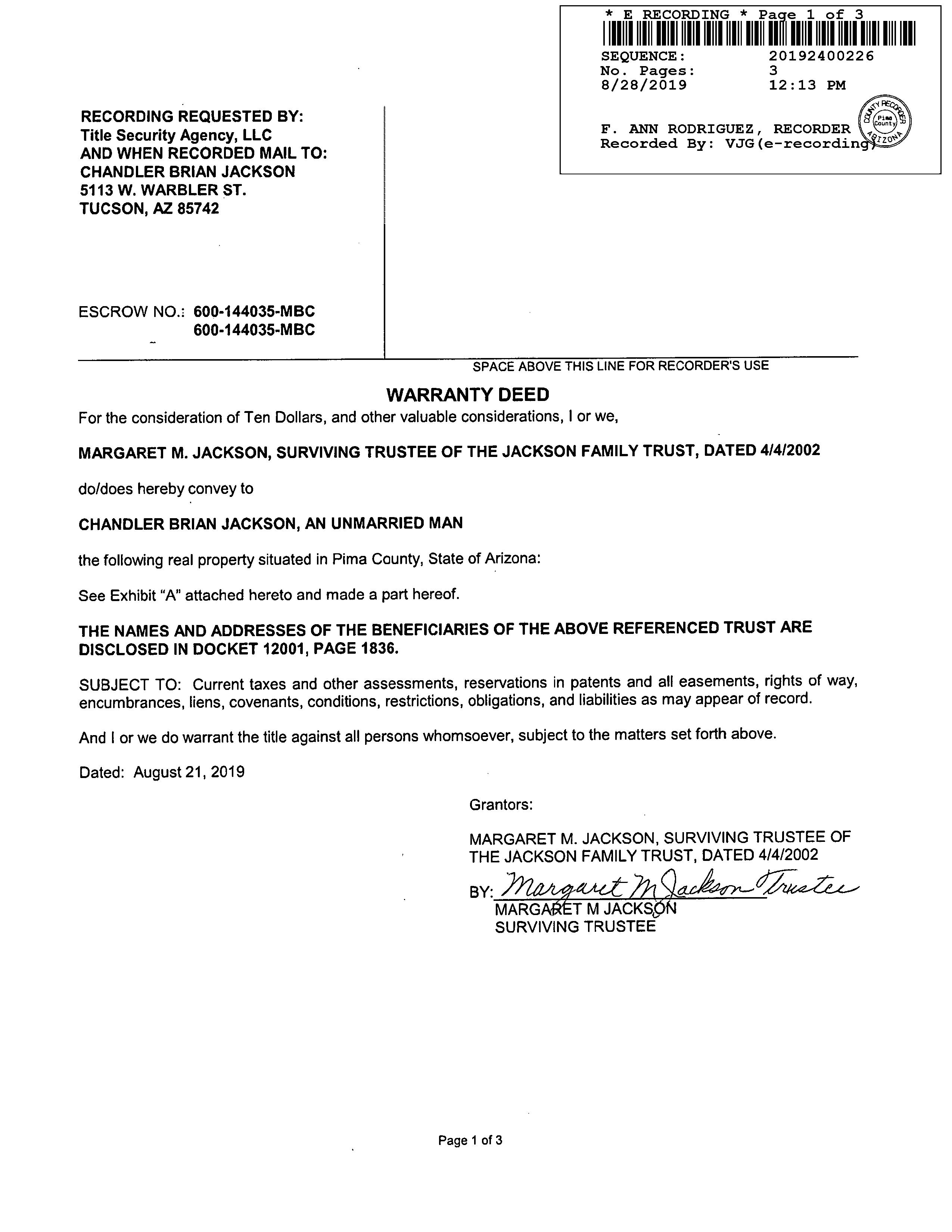 Seller Name : Jackson Family Trust