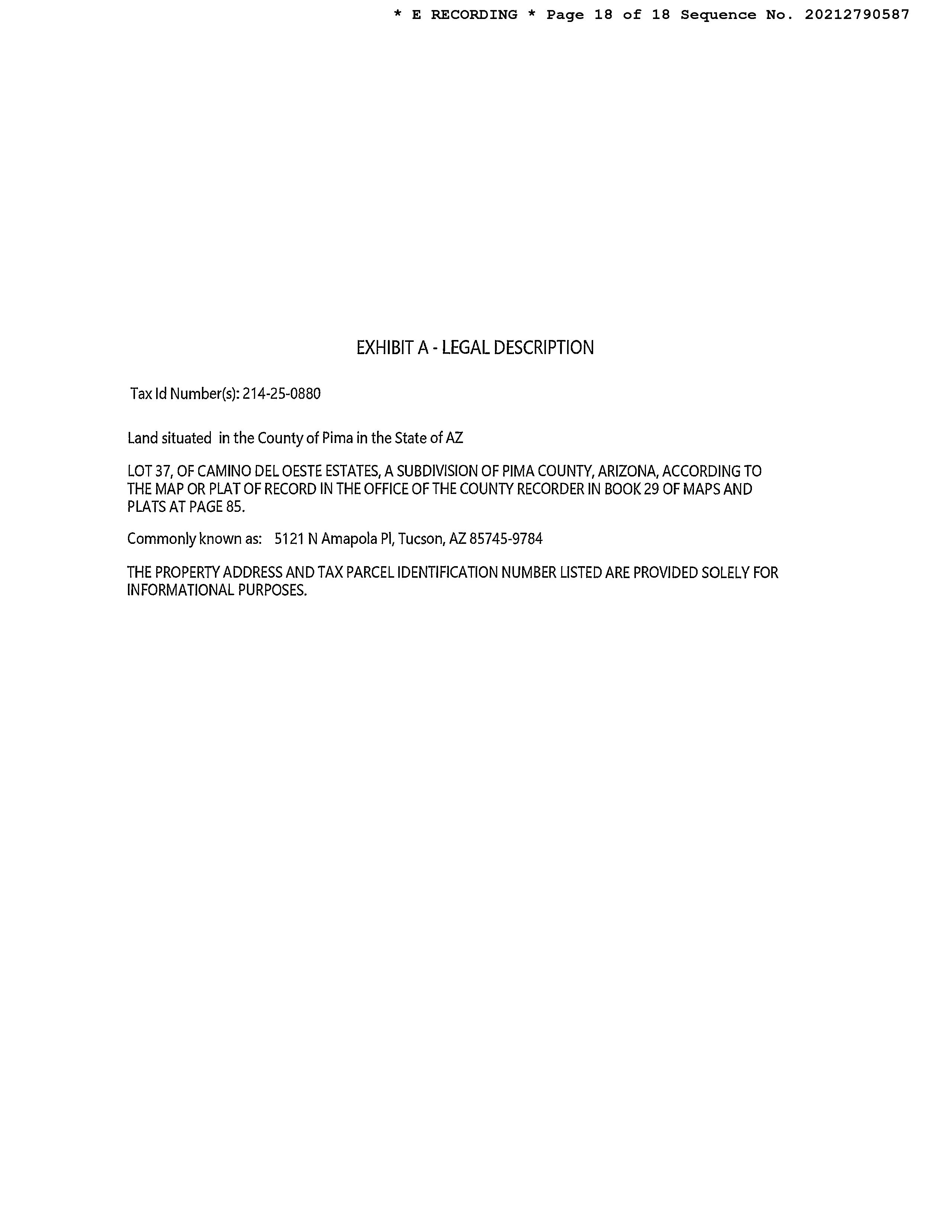 Mailing Address : 5121 N Amapola Pl, Tucson AZ 85745-9784 R013