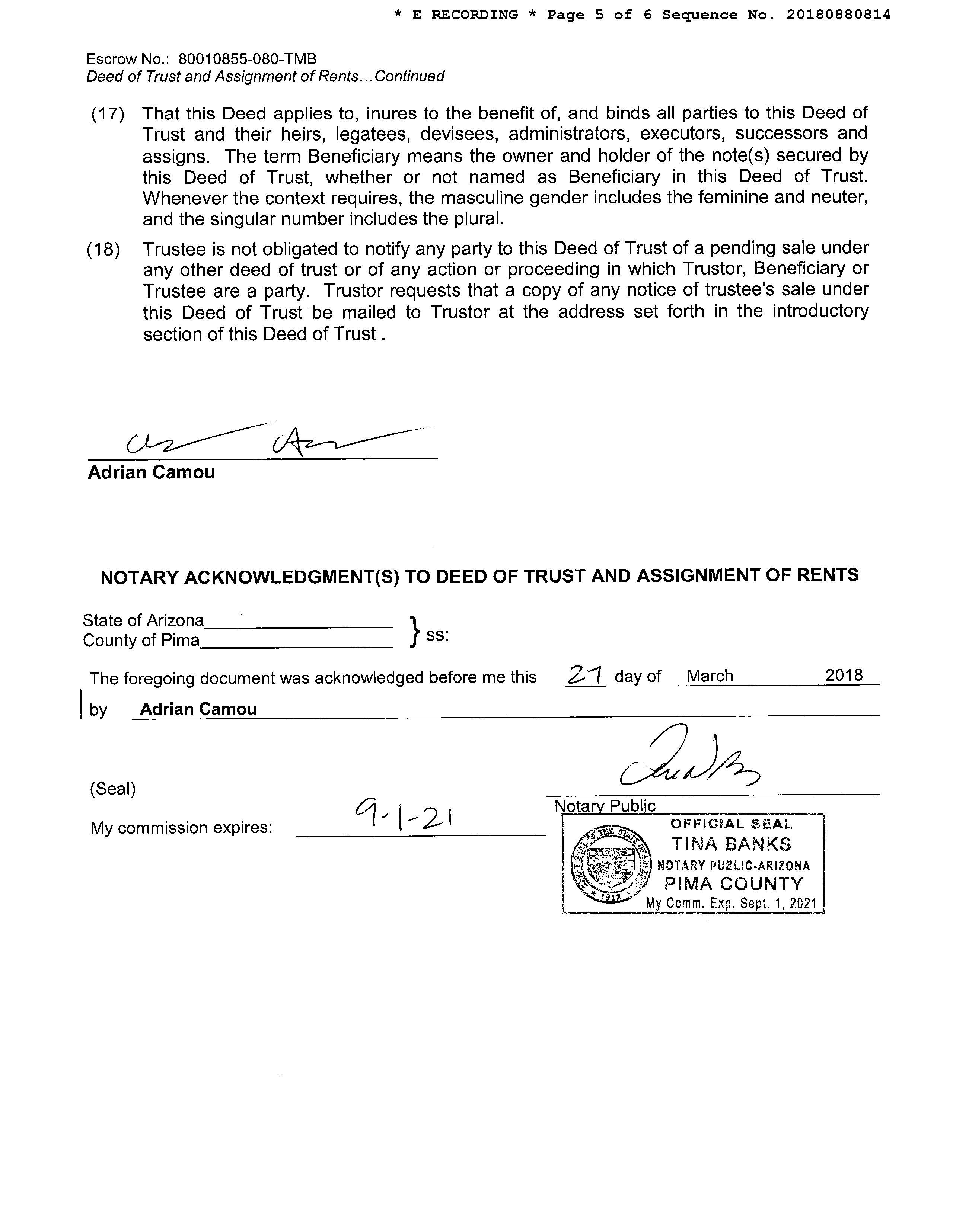 + FIRST AMERICAN TITLE, FC0, LMRA PIMA, AZ