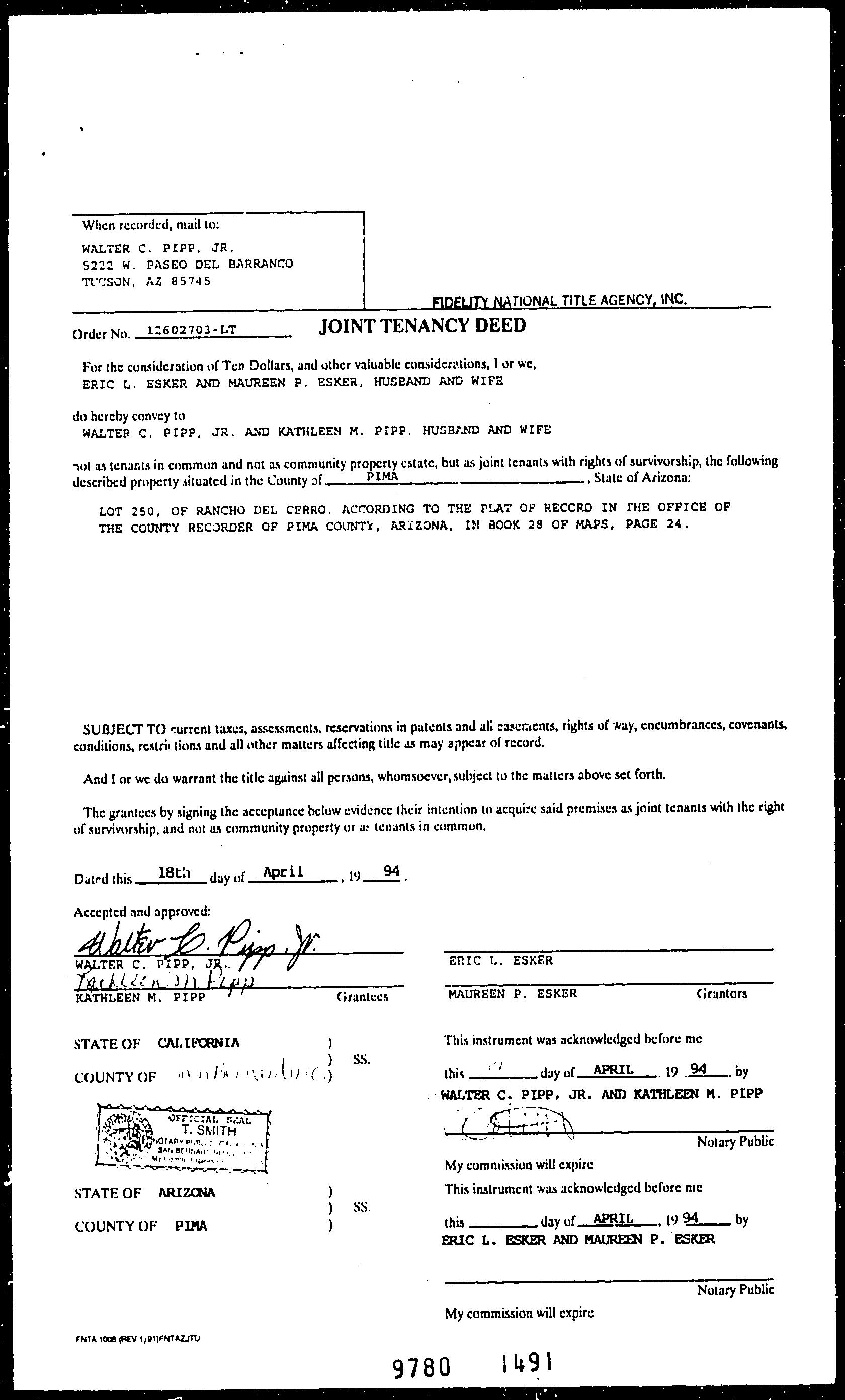 Owner Name : Pipp Walter C Jr / Pipp Kathleen M