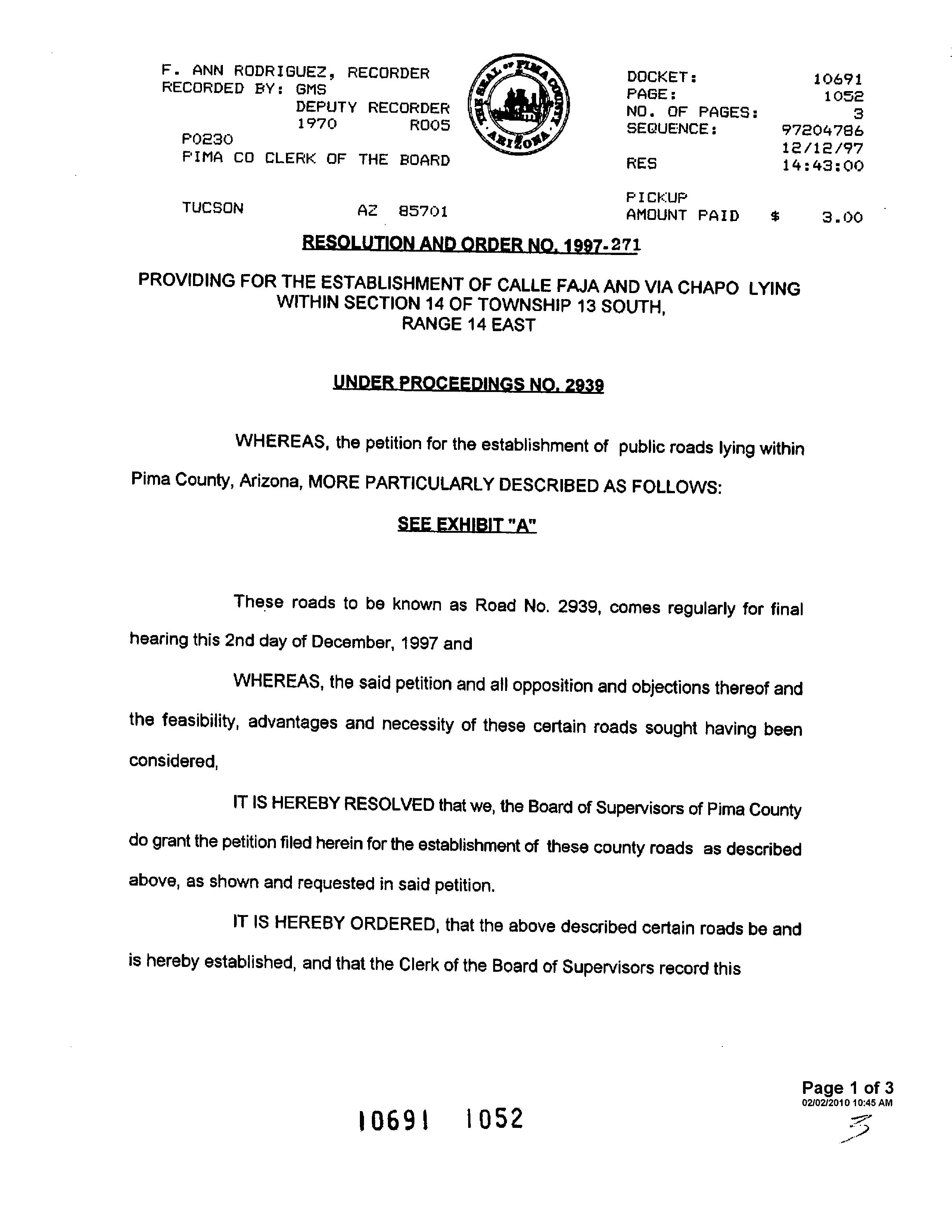 Legal Description : Flecha Caida Ranch Estates No 6 Cntrl Ptn Lot 289 & Nly Ptn Lot 290