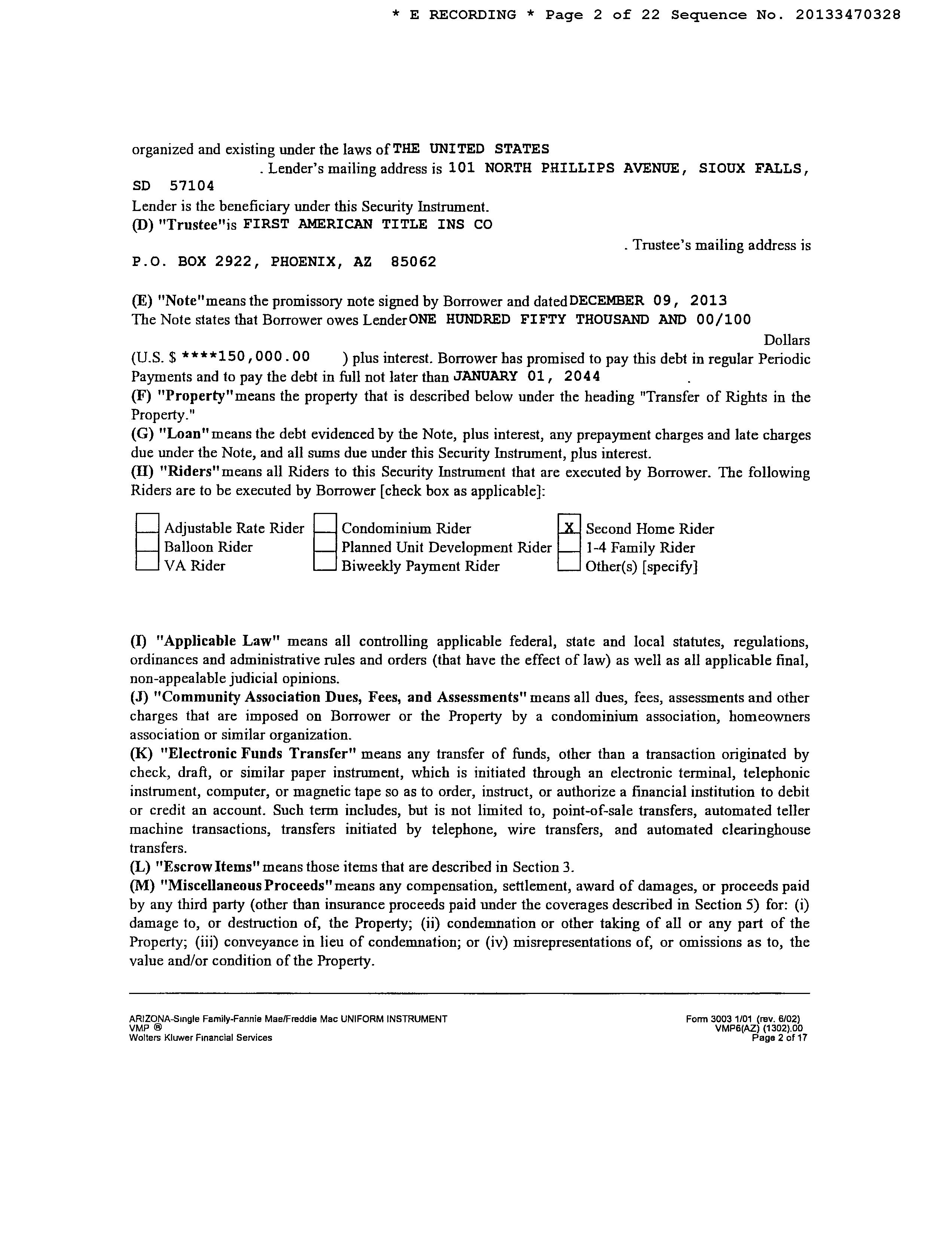 Prior Rec/Sale Date : 05/06/1998 / 04/00/1998 Prior Lender : Bank One/az