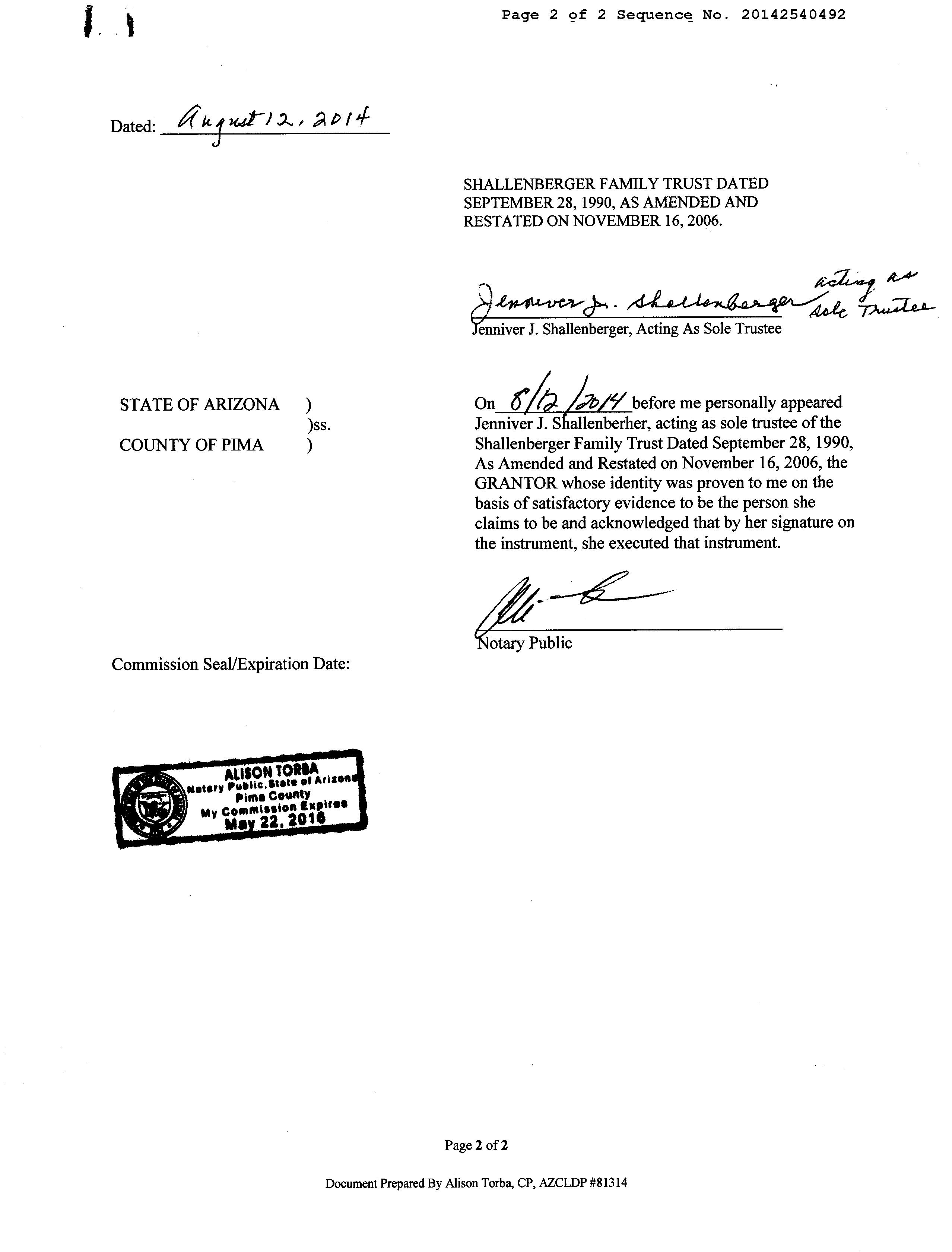 Mailing Address : 529 W Ocotillo Pl, Green Valley AZ 85614-2054 C075