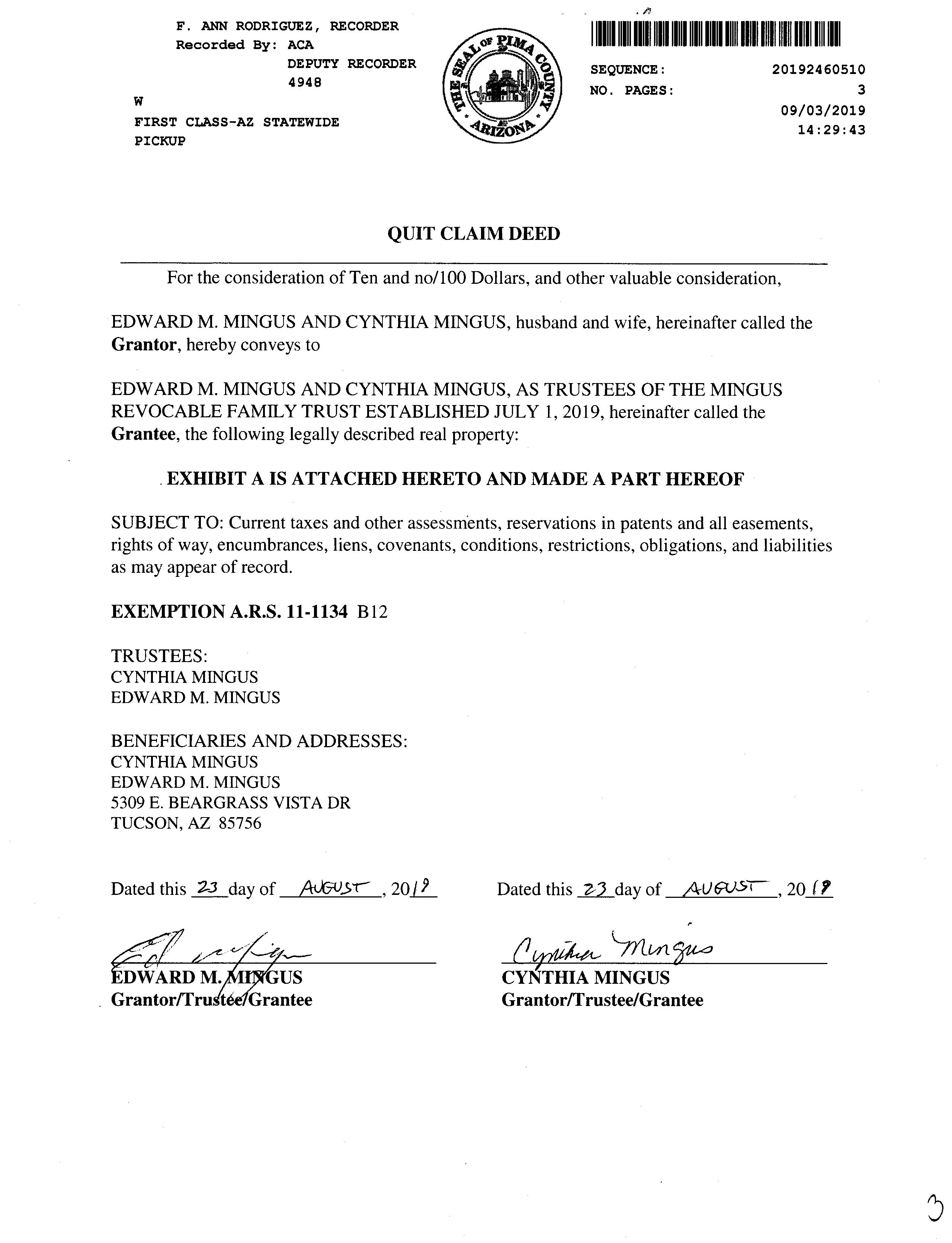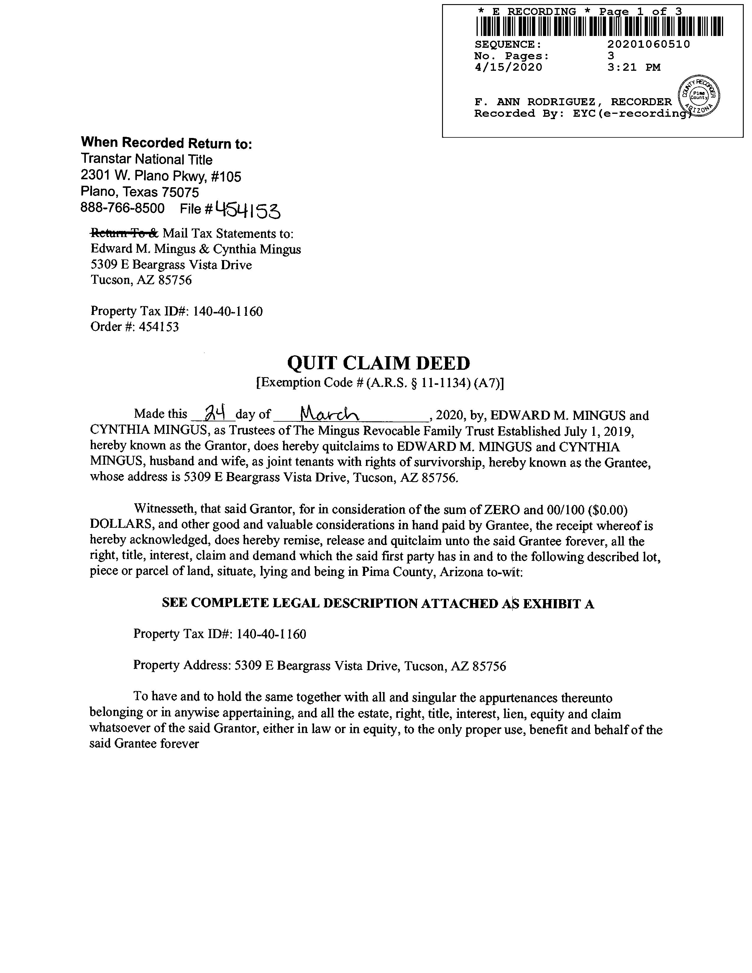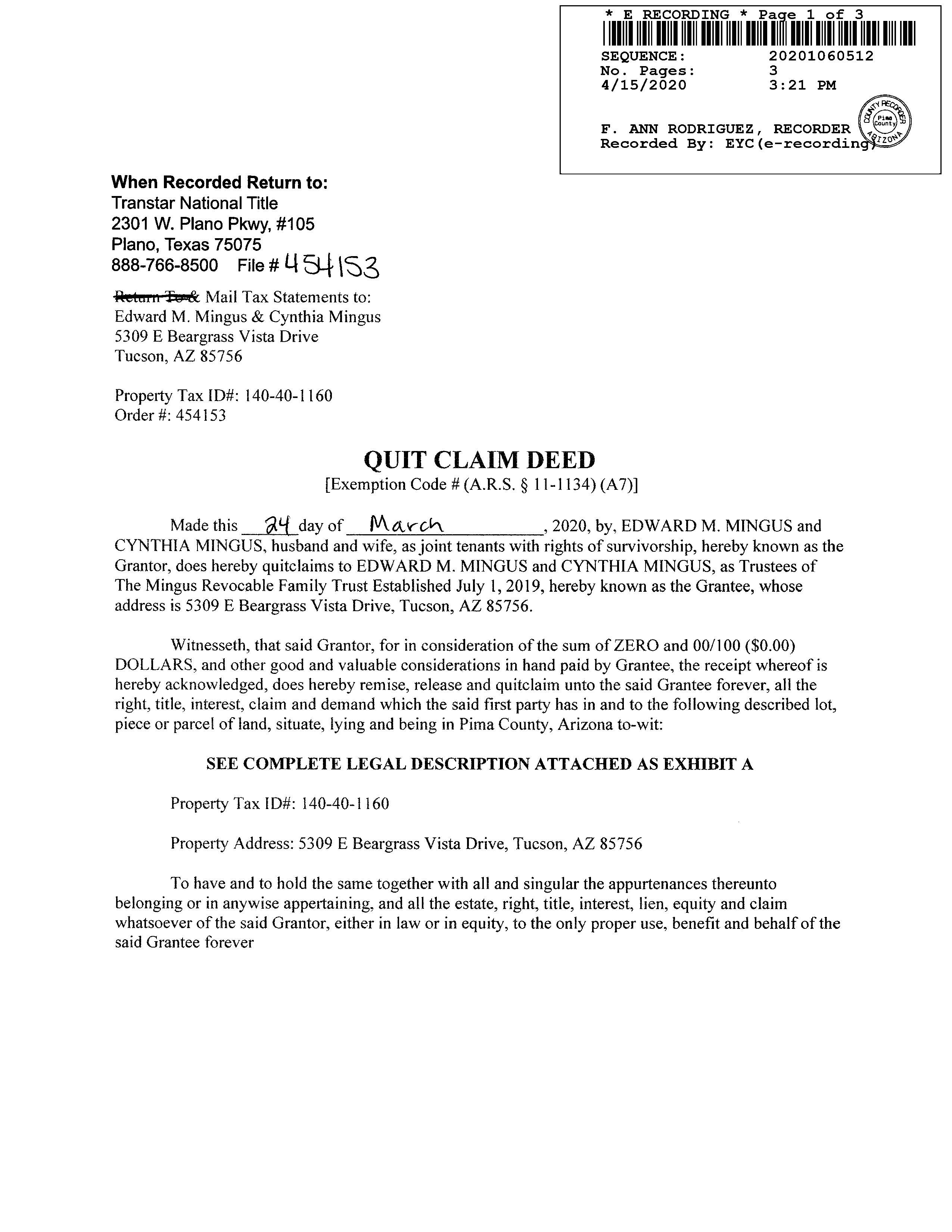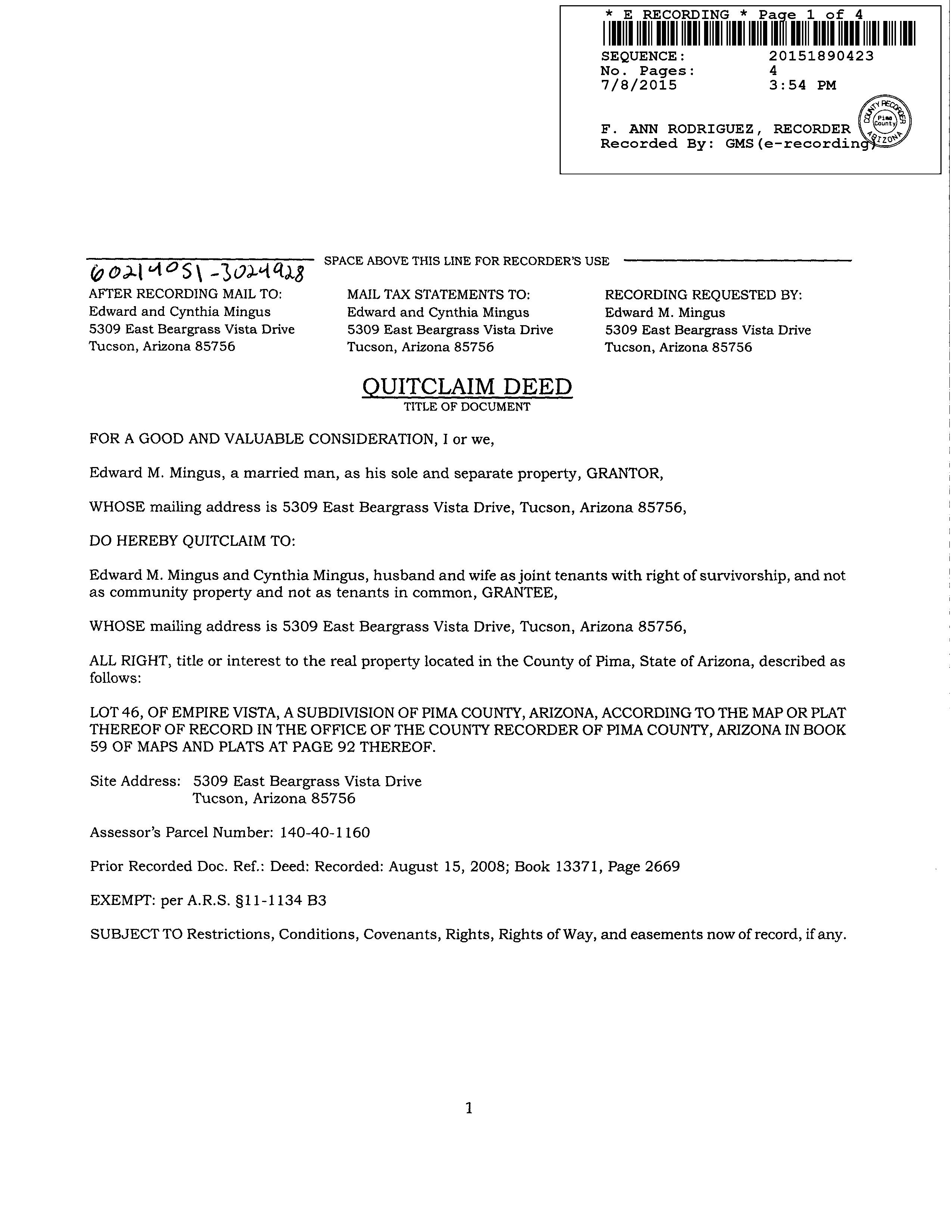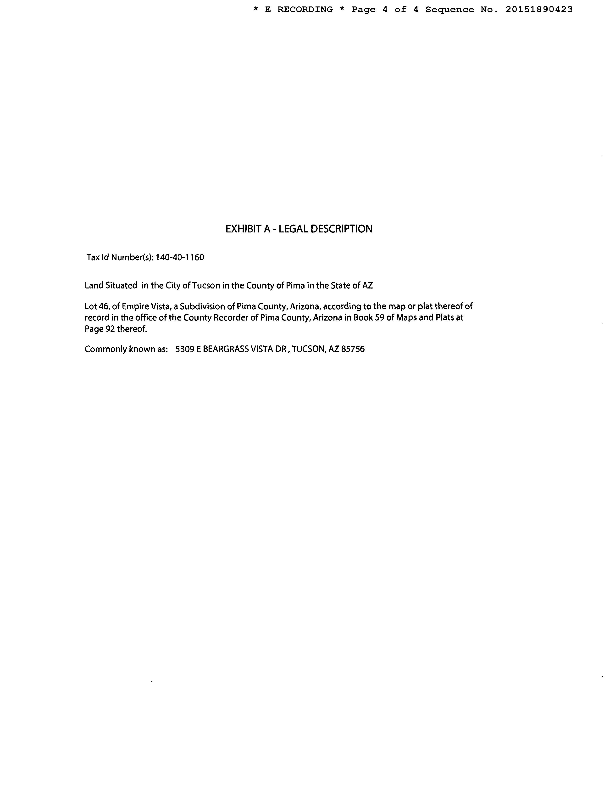 Mailing Address : 5309 E Beargrass Vista Dr, Tucson AZ 85756-8671 R136