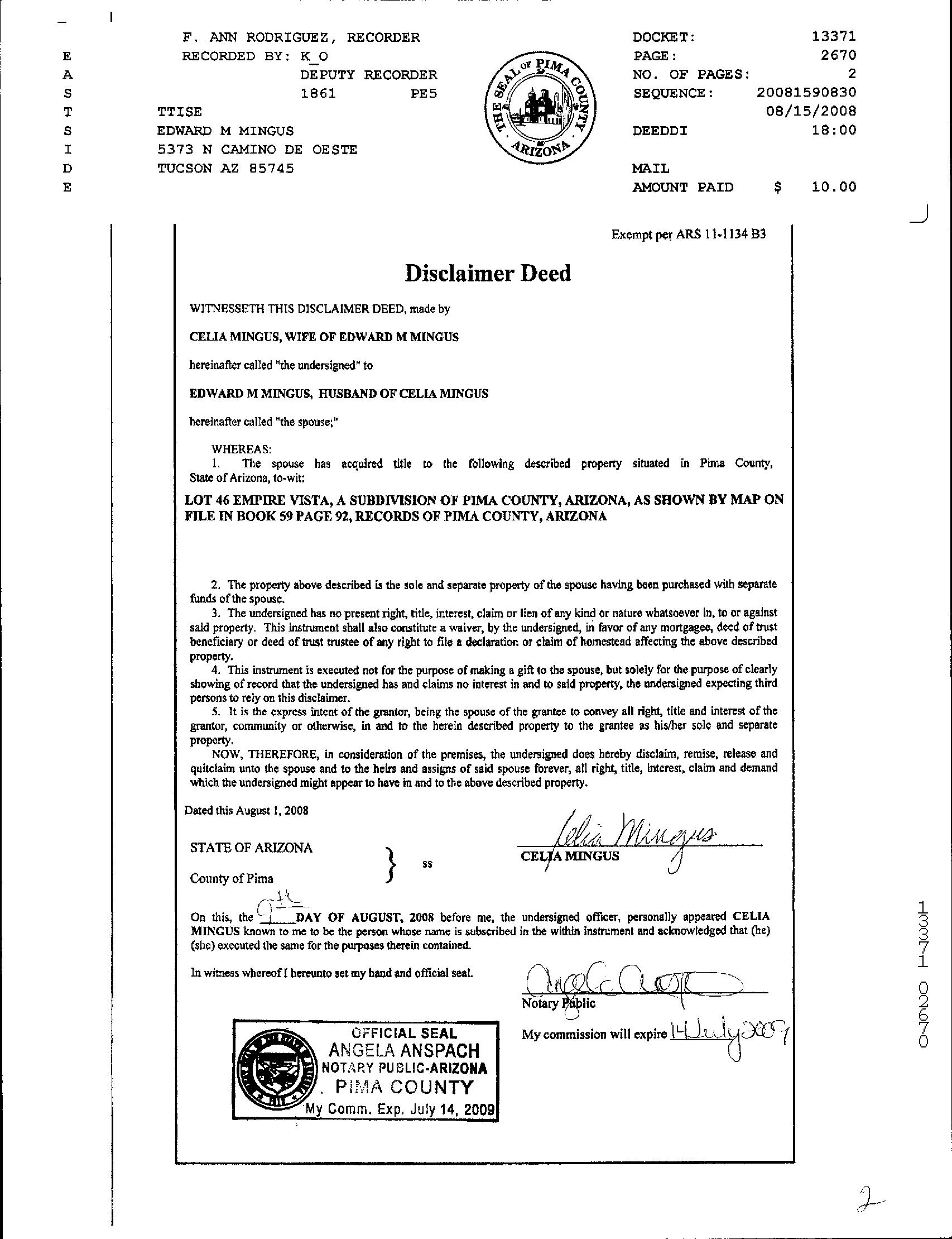 Property: 5309 E Beargrass Vista Dr Tucson Az 85756 Owner Name: Mingus / APN / Alternate APN: 140-40-1160 / Deed Type: Special Warranty Deed Land Use: Sfr Subdivision / Tract: Empire Vista / Lot Size: 8,469 Year Built / Eff: 2008 / Rec. Date / Price: 08/15/2008 / $224,000 Living Area: 2,174 # of units: Document #: 13371-2669 Bedrooms: Pool: Total Tax Value: $202,445 Bath(F/H): / #1   6625 S Lantana Vista Dr Tucson Az 85756 Owner Name: Becerra Laura R / APN / Alternate APN: 140-40-1270 / Deed Type: Warranty Deed Land Use: Sfr Subdivision / Tract: Empire Vista / Lot Size: 8,398 Year Built / Eff: 2008 / Rec. Date / Price: 07/28/2022 / $424,000 Living Area: 2,174 # of units: Document #: 2090237 Bedrooms: Pool: Pool Total Tax Value: $227,780 Bath(F/H): / #2   5243 E Beargrass Vista Dr Tucson Az 85756 Owner Name: Brueck Daniel Victor /Brueck Sharon APN / Alternate APN: 140-40-1100 / Deed Type: Warranty Deed Land Use: Sfr Subdivision / Tract: Empire Vista / Lot Size: 8,625 Year Built / Eff: 2008 / Rec. Date / Price: 04/15/2022 / $402,500 Living Area: 2,338 # of units: Document #: 1050479 Bedrooms: Pool: Total Tax Value: $224,053 Bath(F/H): / #3   6632 S Willow Vista Dr Tucson Az 85756 Owner Name: Urias Irma N / APN / Alternate APN: 140-40-1650 / Deed Type: Warranty Deed Land Use: Sfr Subdivision / Tract: Empire Vista / Lot Size: 8,546 Year Built / Eff: 2007 / Rec. Date / Price: 08/12/2022 / $355,000 Living Area: 2,338 # of units: Document #: 2240252 Bedrooms: Pool: Total Tax Value: $223,001 Bath(F/H): / #4   6636 S Quail Vista Dr Tucson Az 85756 Owner Name: Lizarraga Rosa G / APN / Alternate APN: 140-40-1800 / Deed Type: Warranty Deed Land Use: Sfr Subdivision / Tract: Empire Vista / Lot Size: 8,829 Year Built / Eff: 2007 / Rec. Date / Price: 09/21/2022 / $350,000 Living Area: 1,955 # of units: Document #: 2640464 Bedrooms: Pool: Total Tax Value: $188,542 Bath(F/H): /