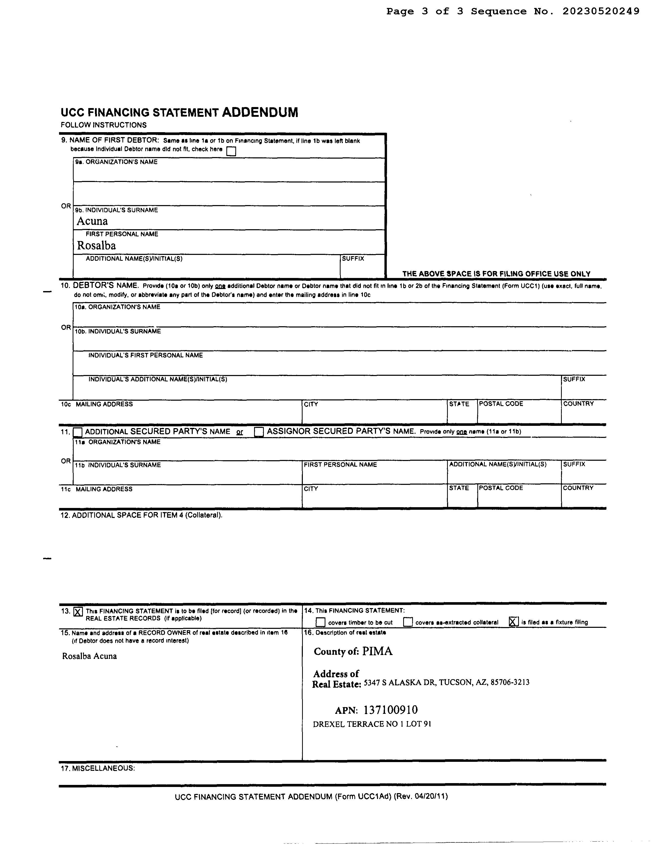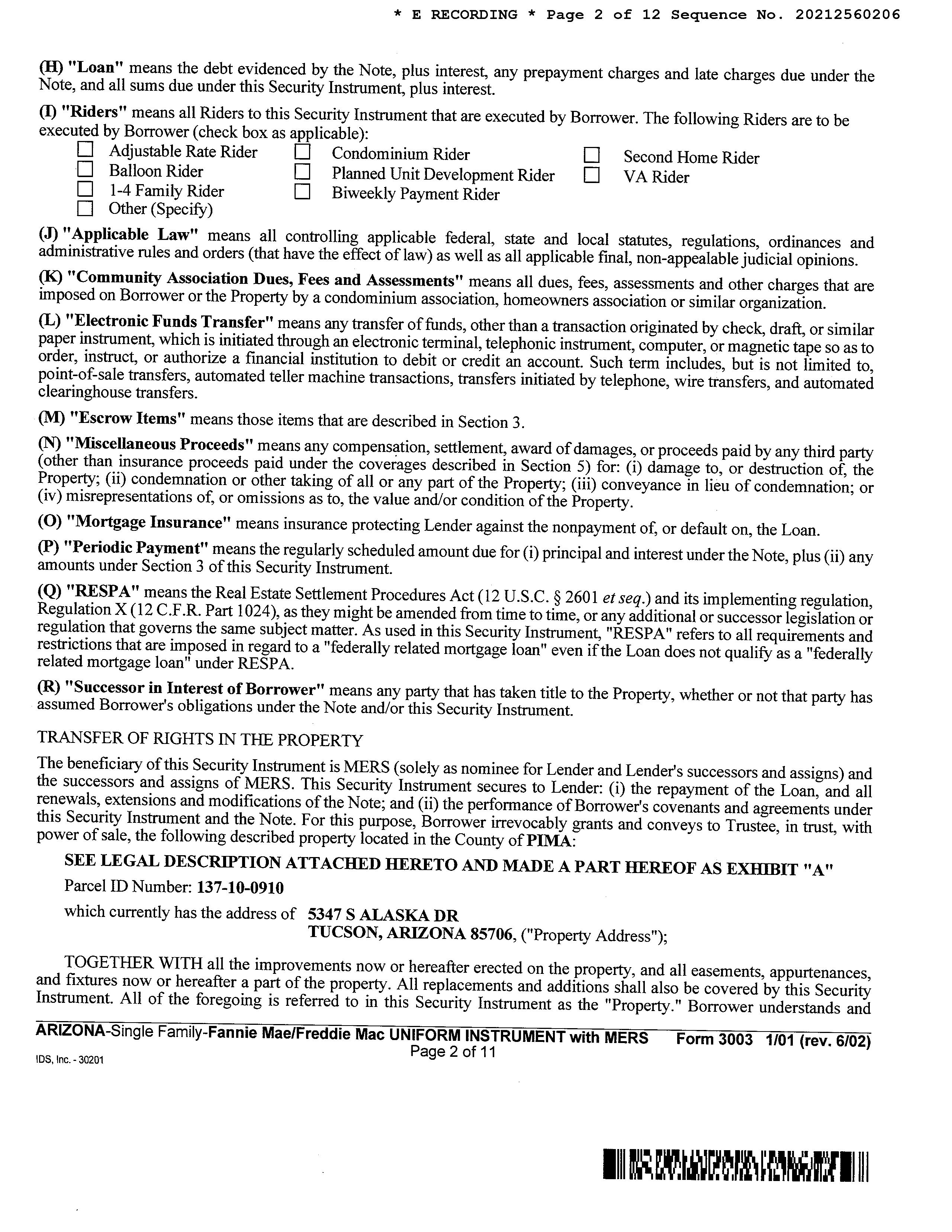 Subject Property: 5347 S Alaska Dr Tucson Az 85706 Owner