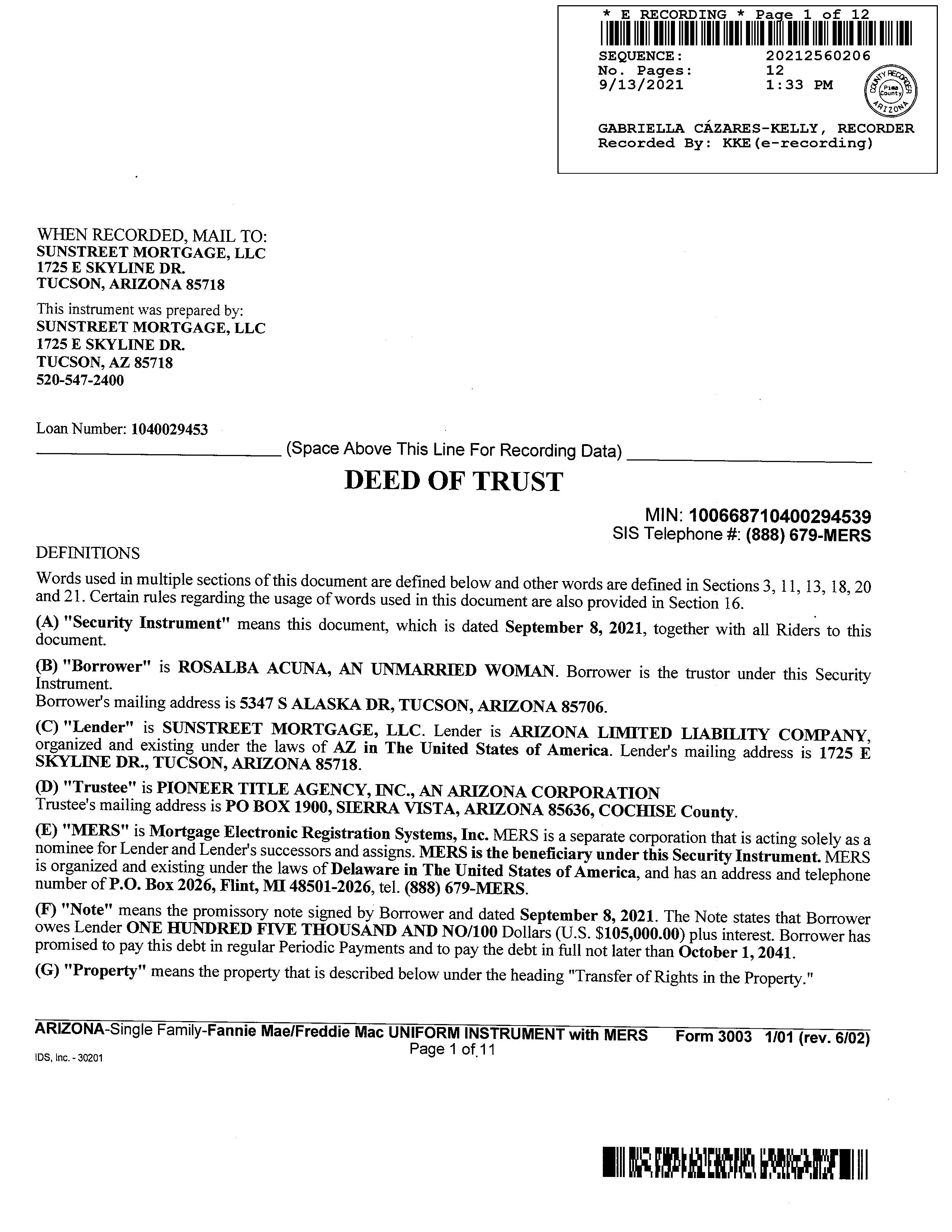 Lender : Sunstreet Mtg Llc